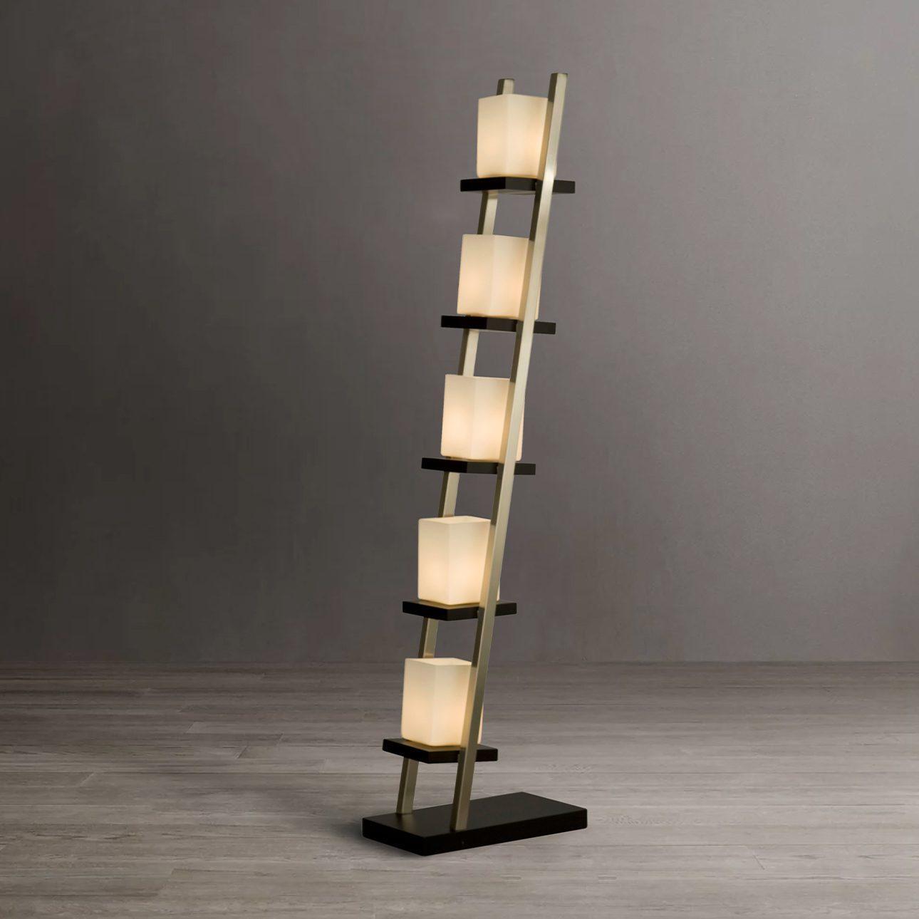 The Escalier Floor Lamp creates a cozy ambiance that transforms any space. Designed by Michael Song who envisioned its ladder design and dark brown and brushed nickel finish, this versatile piece adapts and evolves with your taste and decor. Whether placed in your office, living room, or bedroom, it infuses warmth and relaxation into your evenings, creating the perfect setting for unwinding after a long day. Easily adjustable with its convenient on/off switch, the Escalier Floor Lamp boasts a leaning design with a stair-step style, adding a unique touch to modern and contemporary rooms. This lamp is ideal for dark corners and next to sectionals and sofas.