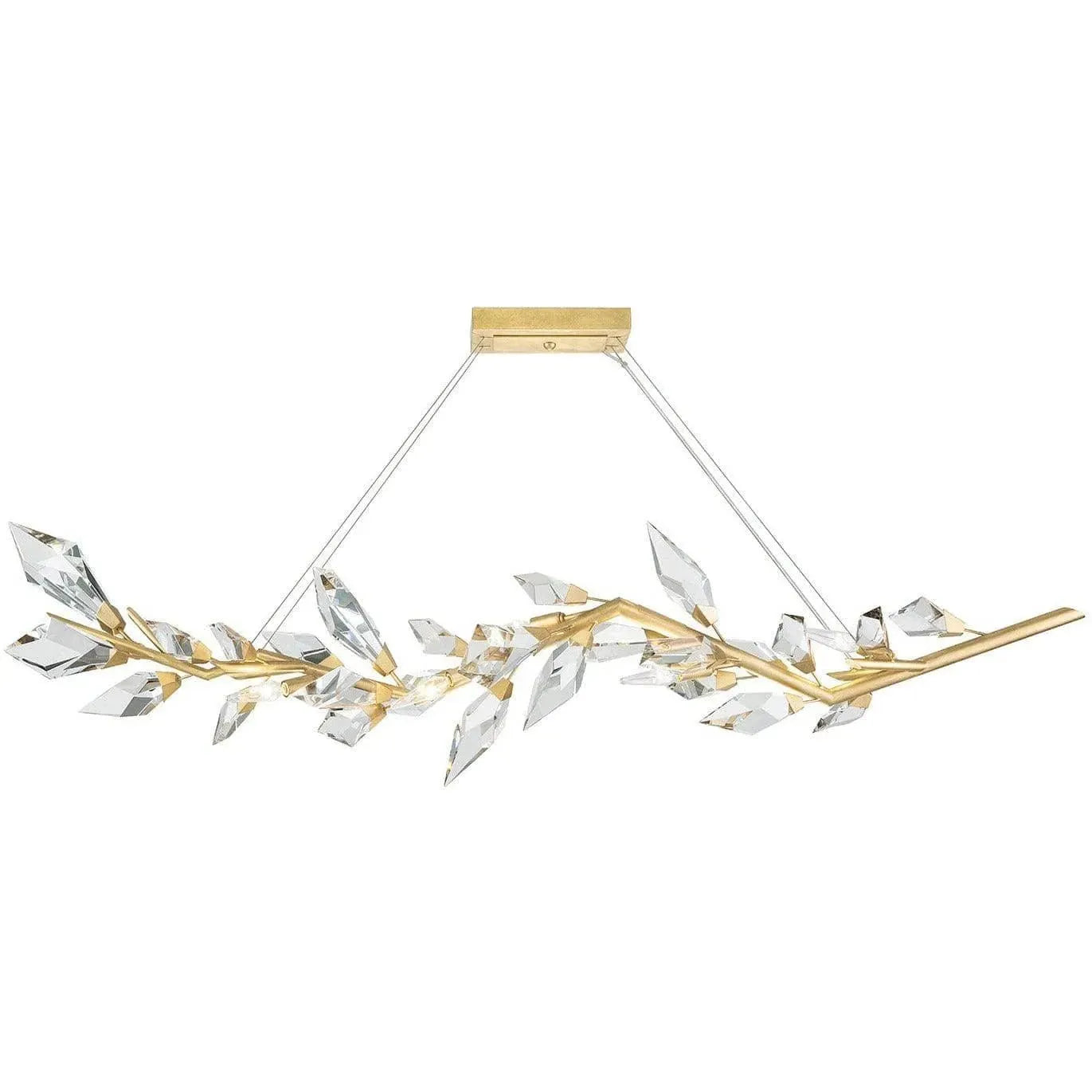 Foret 63-Inch Seven Light Pendant by Fine Art Handcrafted Lighting is a sculptural designer lighting piece that reads as both modern hardware and luxury décor — a linear composition of hand-cut crystal “leaves” set along a refined metal branch.