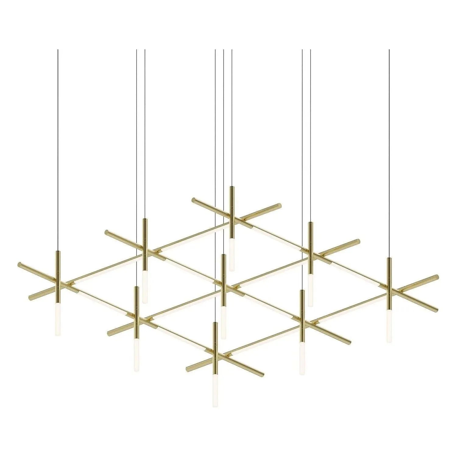 Sonneman’s Labyrinth LED Pendant reinterprets linear geometry into a refined, sculptural plane—an object of light that reads as architectural and deliberate. The staggered, intersecting LED rails and slender suspension cables create a floating grid that defines space without visual weight.