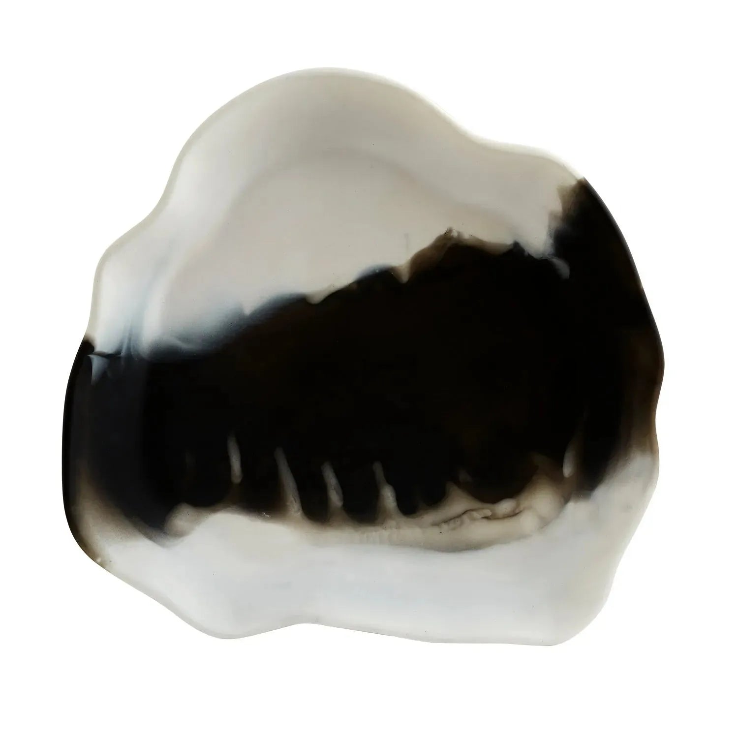 Explore the concept of yin and yang in this duo of trays. Black and white combinations sweep large-scale resin foundations, each with its own distinct swirl pattern. Organic edges give the set enhanced natural appeal. Showcased solo or as a pair, the Hollie Trays stun as a centerpiece or valet. Finish will vary.