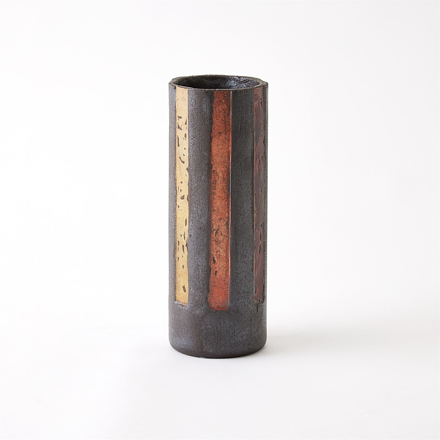 The Digit Vases and Bowl are exquisite examples of handcrafted Portuguese ceramics, created using an ancient Japanese firing method known as Raku. The journey begins with skilled artisans hand-forming the clay into the desired shapes for the vases and bowl. The formed clay pieces are fired in a kiln at relatively low temperatures. When the ceramics reach the optimal temperature in the kiln, they are quickly removed while still glowing hot. These red-hot pieces are then placed into a container filled with combustible materials like sawdust, leaves, or paper. This ignition creates a reduced atmosphere within the container. As a result of the rapid cooling and reduction process, the glazes on the ceramics begin to crack and form intricate and often unpredictable patterns on the surface. This crackling effect is one of the hallmark features of the Raku firing process.