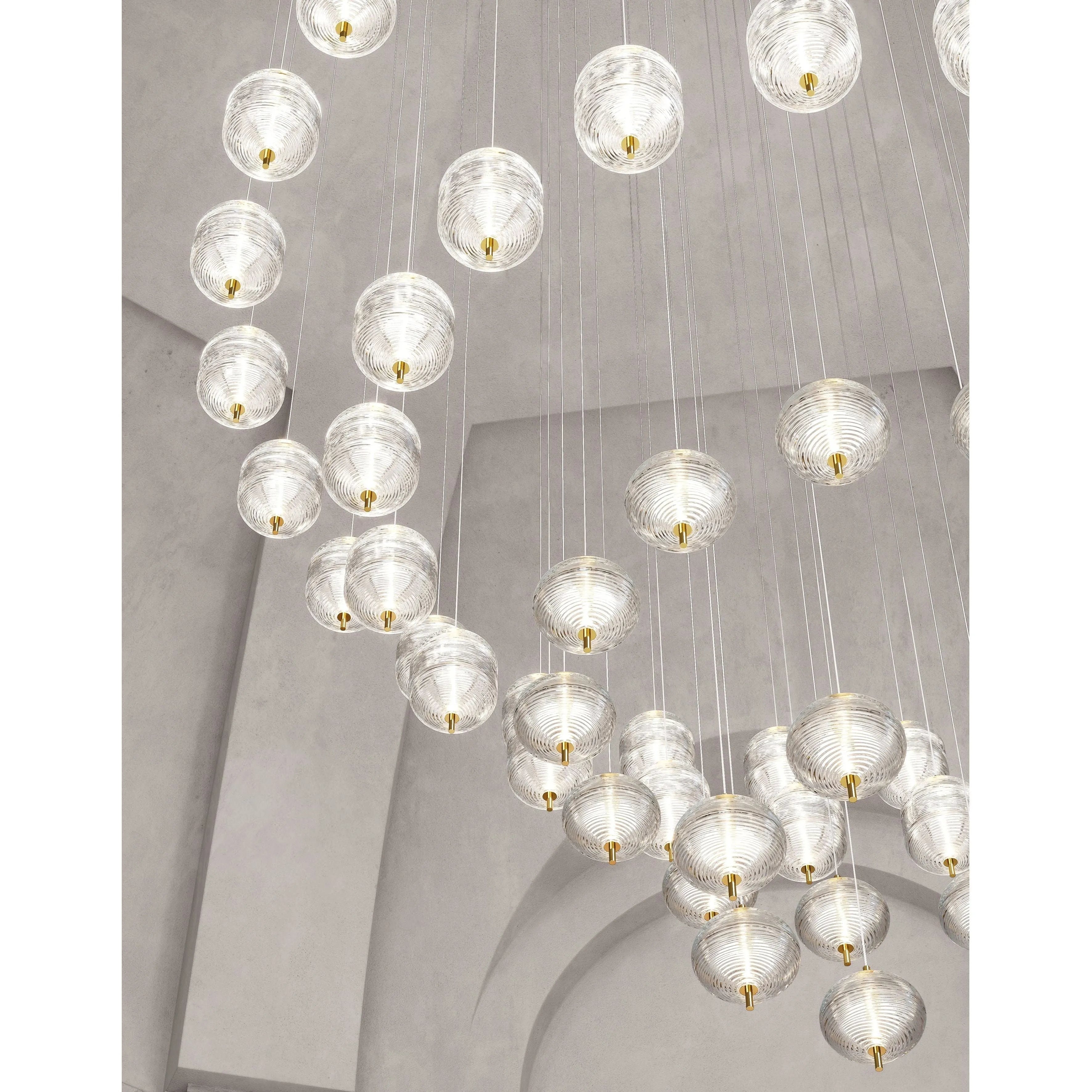 The Jefferson suspension lamp designed by Luca Nichetto is reminiscent of music and iconic images in psychedelic works of art from the 1960s. The vortex motif decorating the diffuser is embellished by the timeless classicism of Bohemian crystal, which diffuses evocative atmospheres of light. Dynamic in its many sizes and multiple compositions, Jefferson’s elegance keeps up with the excellent performance of LED interior lighting.