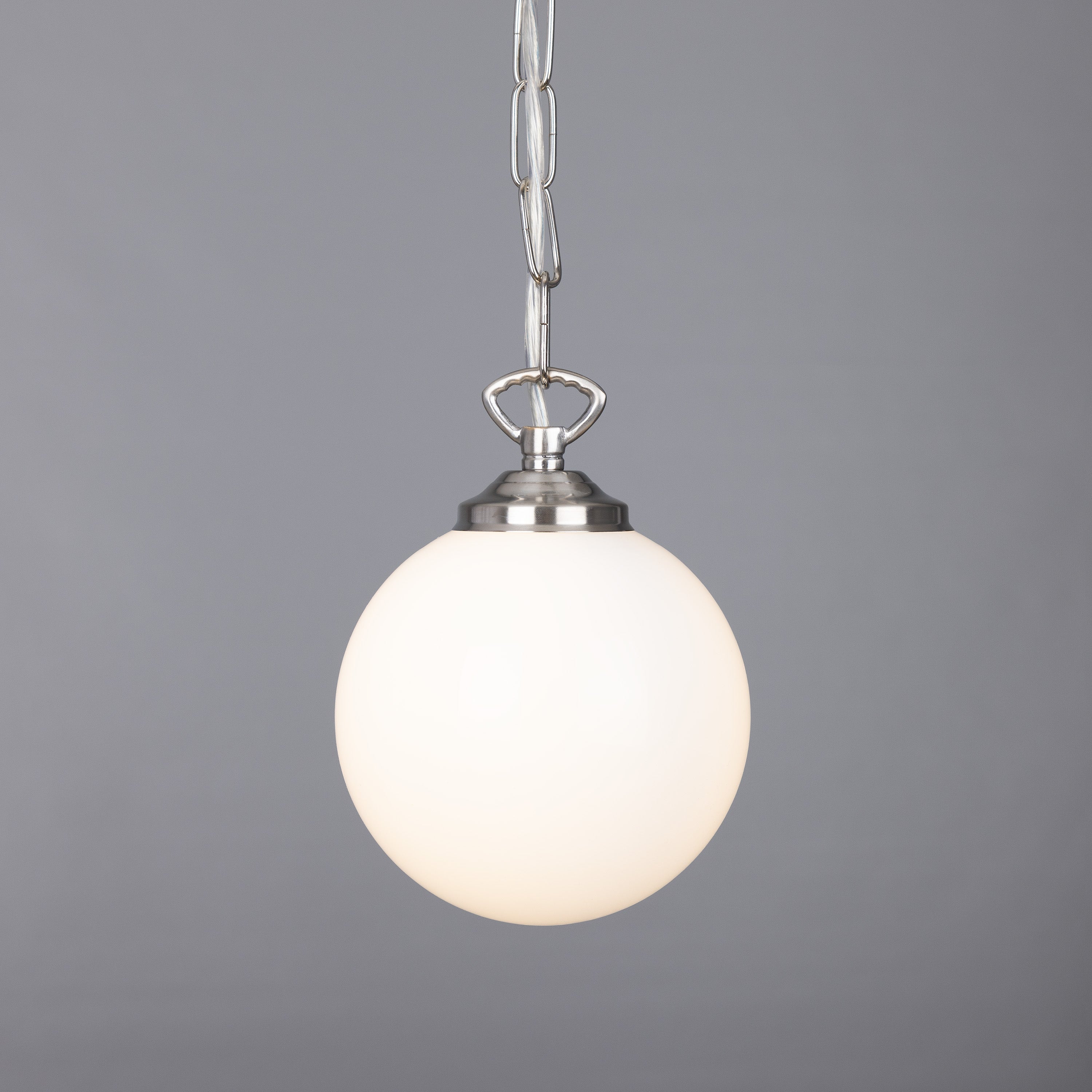 Yaounde 14cm Globe Pendant by Mullan Lighting is a study in purposeful simplicity — a 14cm opal globe suspended from a refined metal cap and chain that delivers even, glare‑free illumination. Designed for interiors where proportion and finish matter, it reads equally at a single pendant scale or in considered groupings above bars, vanities, and circulation spaces.