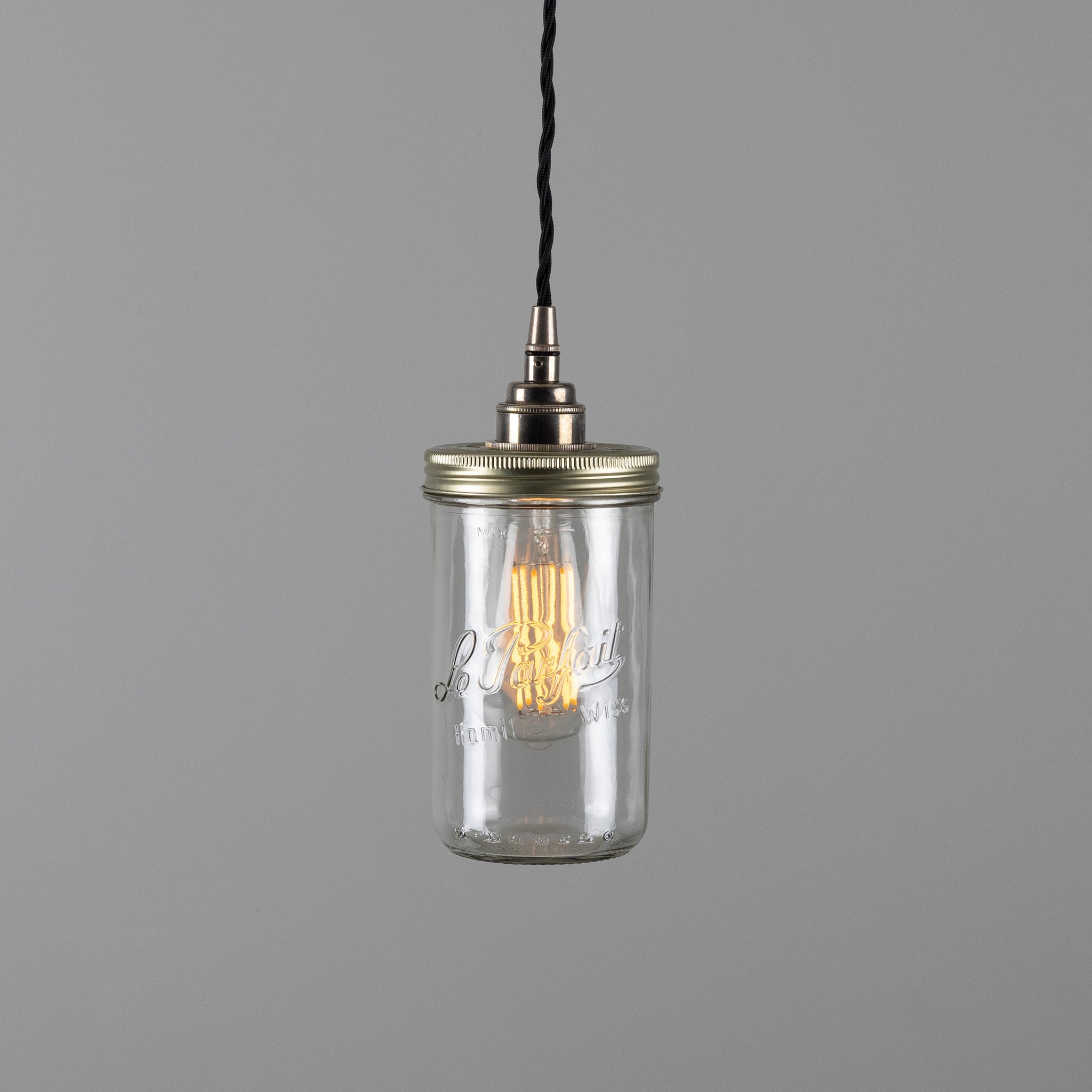 Jam-Jar Pendant by Mullan Lighting is a study in honest materials and refined utility — a clear blown-glass jar transformed into a sculptural pendant that showcases form, finish and function. The embossed glass body, vintage-style screw lid and exposed filament lamp create a warm, directional glow that reads equally at a breakfast bar or within a curated hospitality scheme.