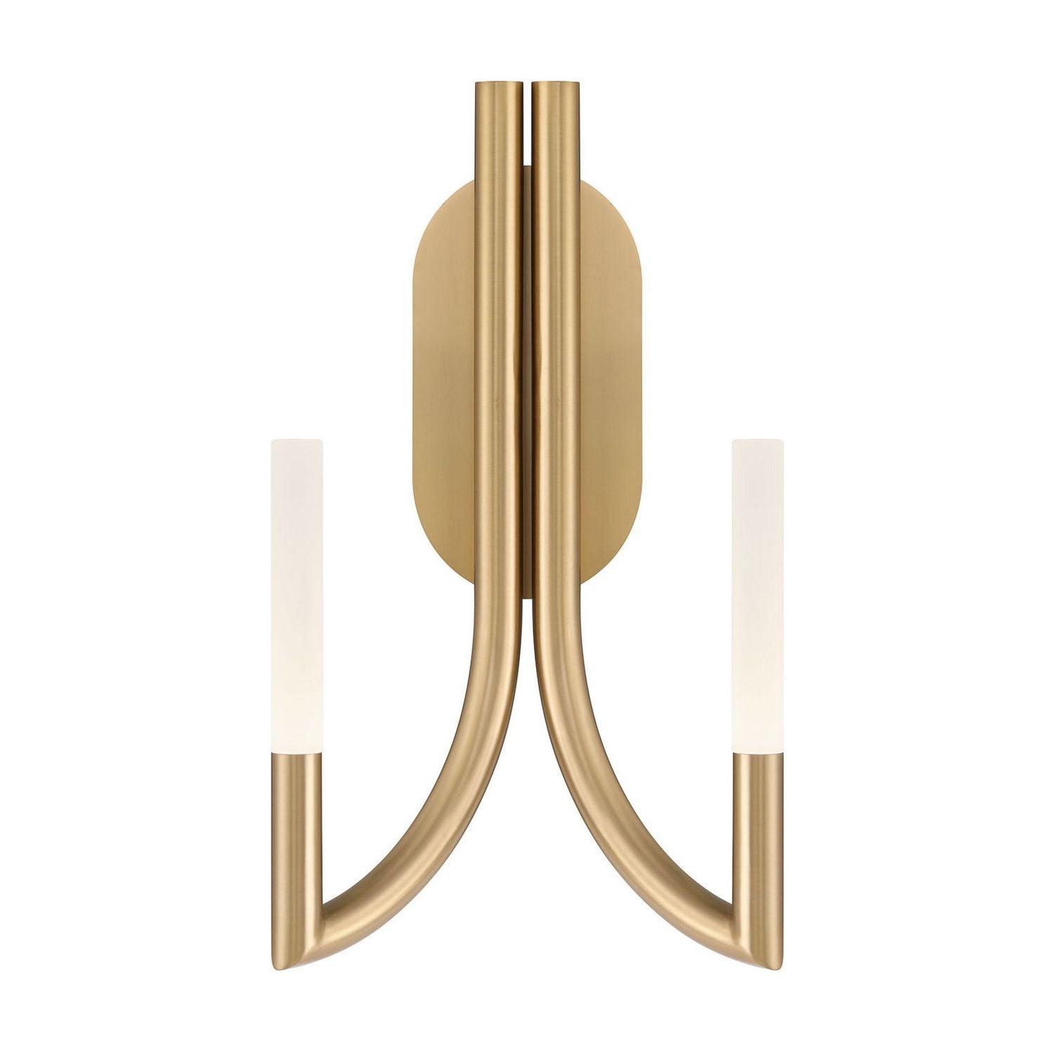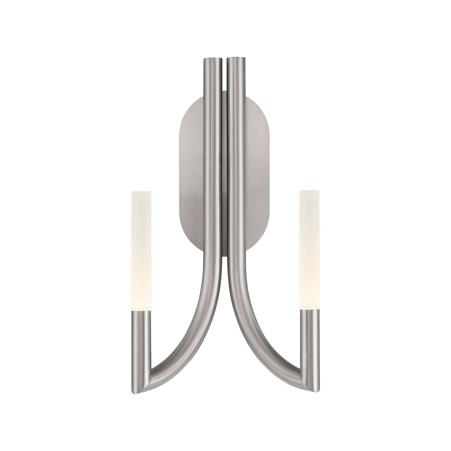 Olette Wall Sconce by Eurofase — A study in refined geometry, this sculptural wall sconce marries smooth, brushed-metal tubing with slender frosted diffusers to deliver warm, ambient illumination and a striking visual anchor for curated interiors.