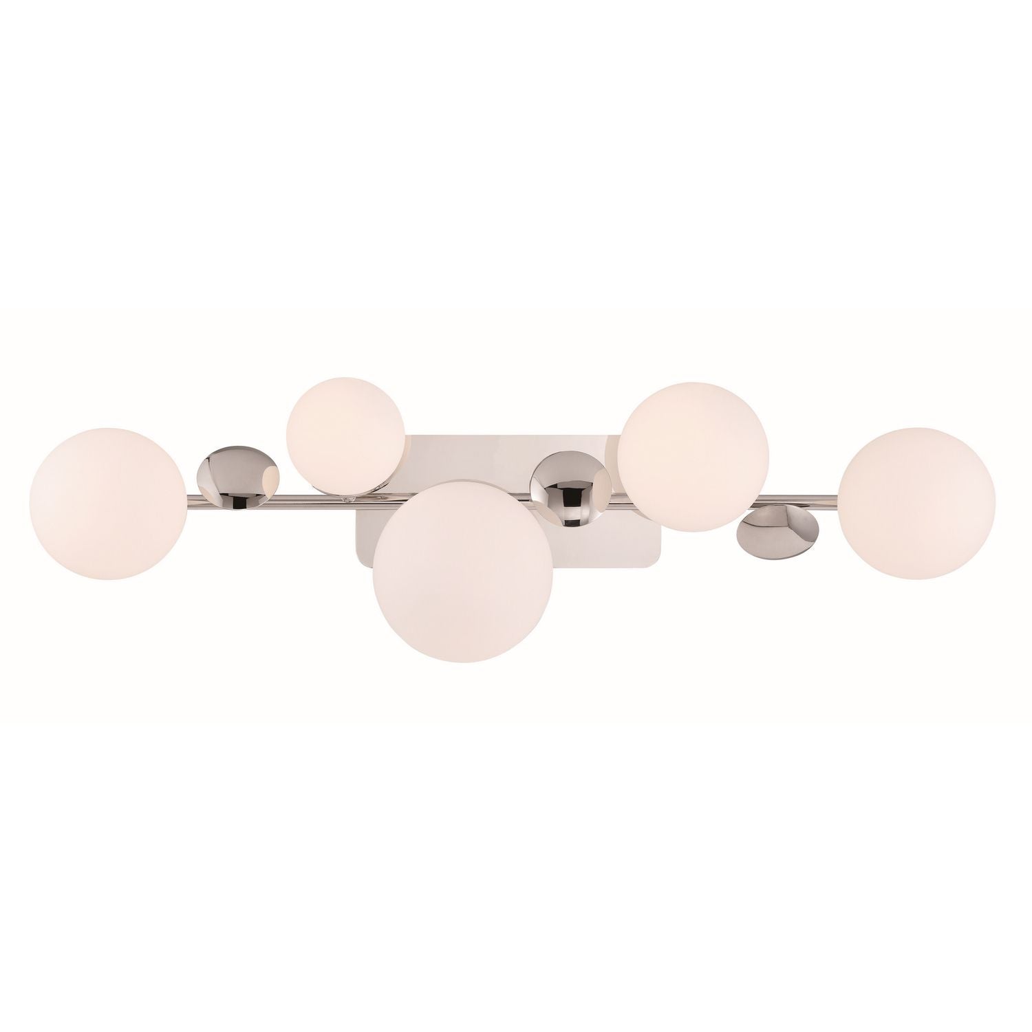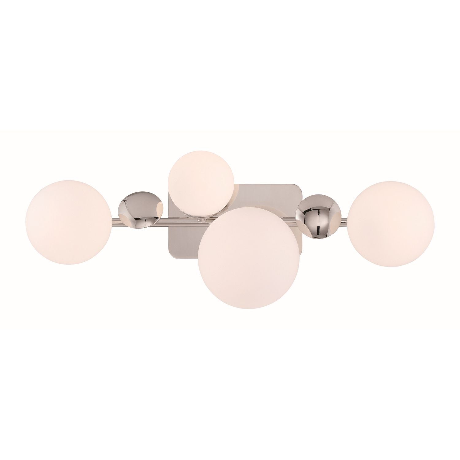 Crafted with opal glass spheres and precision-formed metal details, this designer lighting piece pairs artisanal finish work with practical illumination. The balanced composition delivers even, glare‑softened light ideal for bathrooms, hospitality corridors, or curated residential installs.