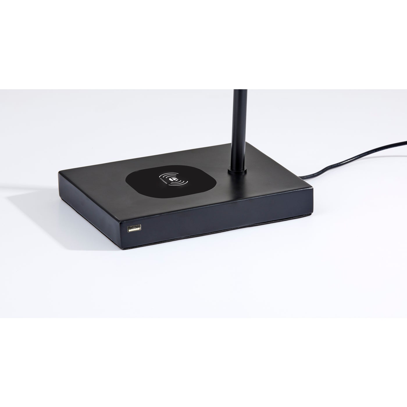 The Collette Collection LED Desk Lamp is an adjustable, mid-century modern styled LED Task Light that includes a wireless charging pad with Qi inductive charging technology. Many smartphones (list below) have Qi technology built in, so just place your phone on the pad and it will charge right up. No cords, no mess. It's that easy! All ManifacturerCharge product is Qi certified by the Wireless Power Consortium. Please visit https://www.wirelesspowerconsortium.com/products/search/ to see a list of Qi certified products. Our product has been tested and verified to be safe and in compliance with the Qi standard. The ManifacturerCharge pad supports 5W charging on contact with the charging pad, which gets your phone from 0% to 100% in just 3-4 hours, depending on your phone model. A USB is located on the base and can charge up a second device simultaneously. ManifacturerCharge is unique in that you can use the ManifacturerCharge pad, the USB and the 7 Watt LED light all at the same time with maximum efficiency of all three. A sleek ManifacturerCharge pad design that is flush with the surrounding area provides an attractive charging station with easy access to your phone while its charging. Just plug in the lamp and the charger will work. The light on the lamp does not even need to be turned on. This wireless charging pad will charge your phone through most materials, do you do not even need to remove your case! Only metal will hinder the function of the charging pad to charge through the case. If your smartphone doesn't support Qi wireless charging, you will need to purchase a Qi compatible case, which is sold through a variety of retail channels. Or you can also charge your smartphone with the USB port that is also included in the lamp base. �Compatible with Apple iPhone 8 / 8 plus / X / Galaxy Note 8 / S8 / S8 plus / S7 / S7 edge / S6 / S6 edge / S6 edge+ / Nexus 4 / 5 / 6 / 7 / LG G3/ Microsoft Lumia 1520, 1020, 930, 929, 928, 920