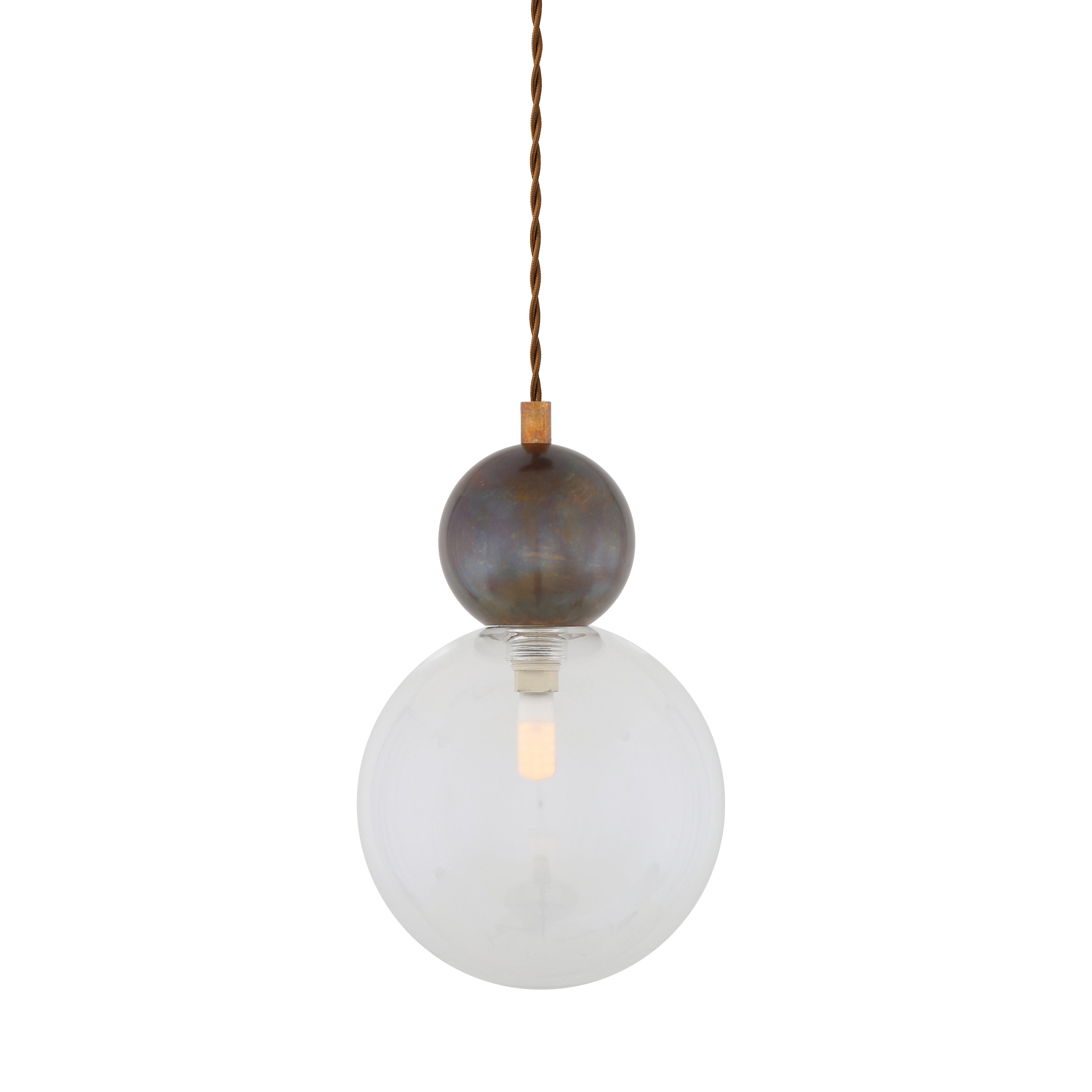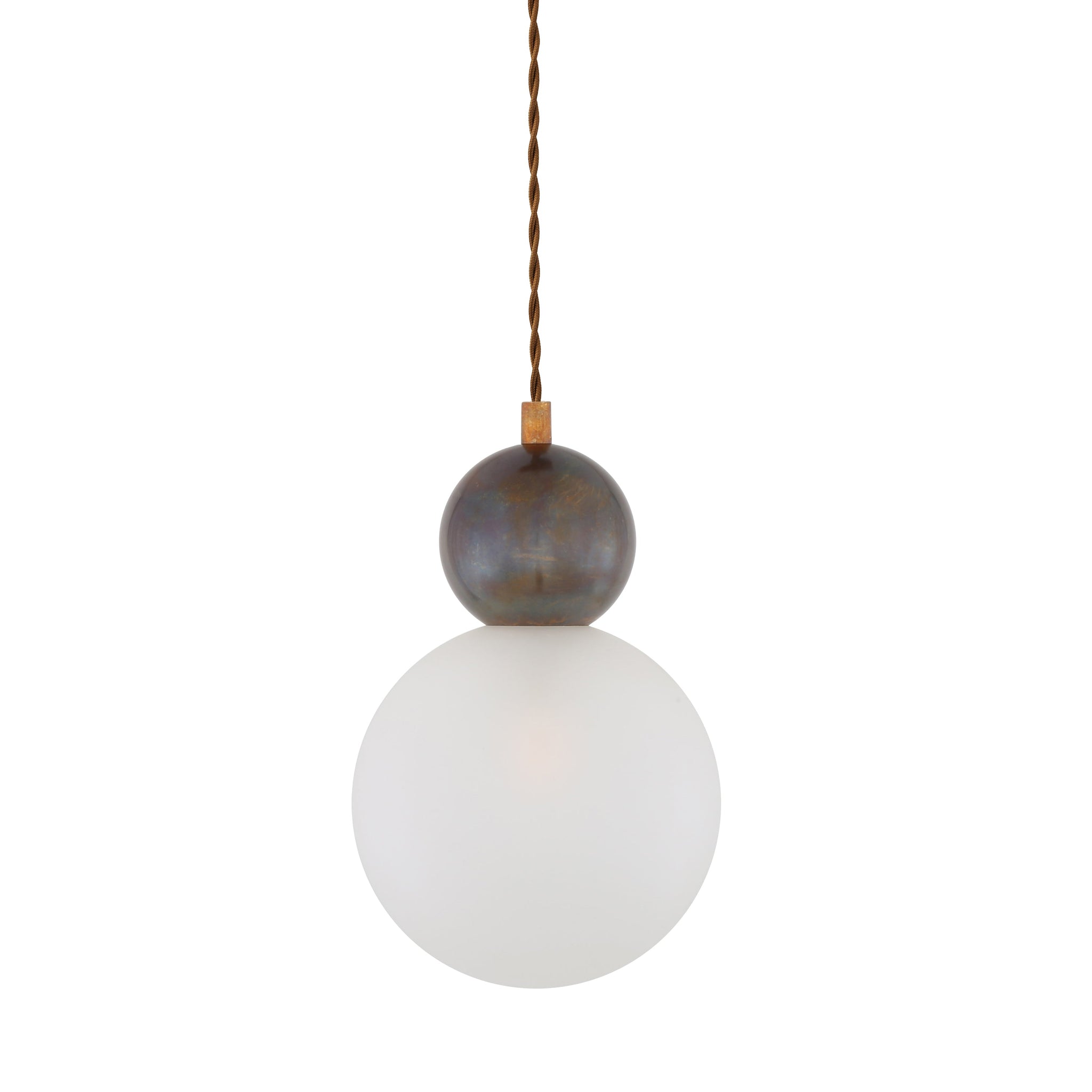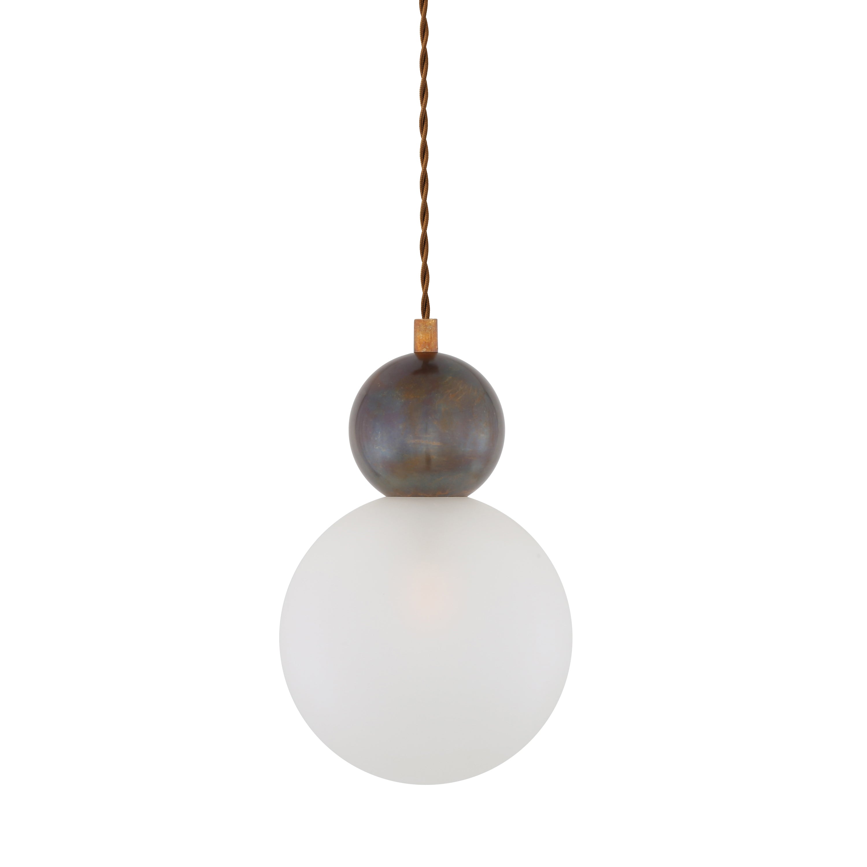 Helena Pendant by Mullan Lighting is a study in refined proportion — a blown-glass globe balanced beneath a hand-finished spherical cap, engineered to read as a singular sculptural element. It’s designer lighting that delivers both presence and restraint.