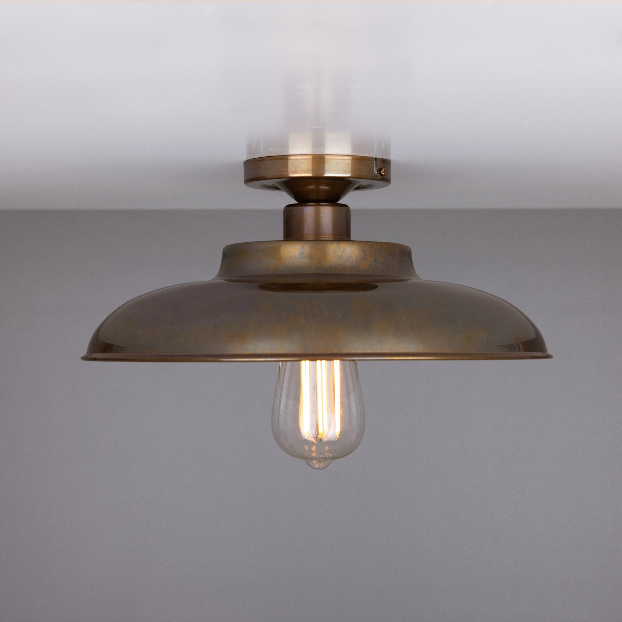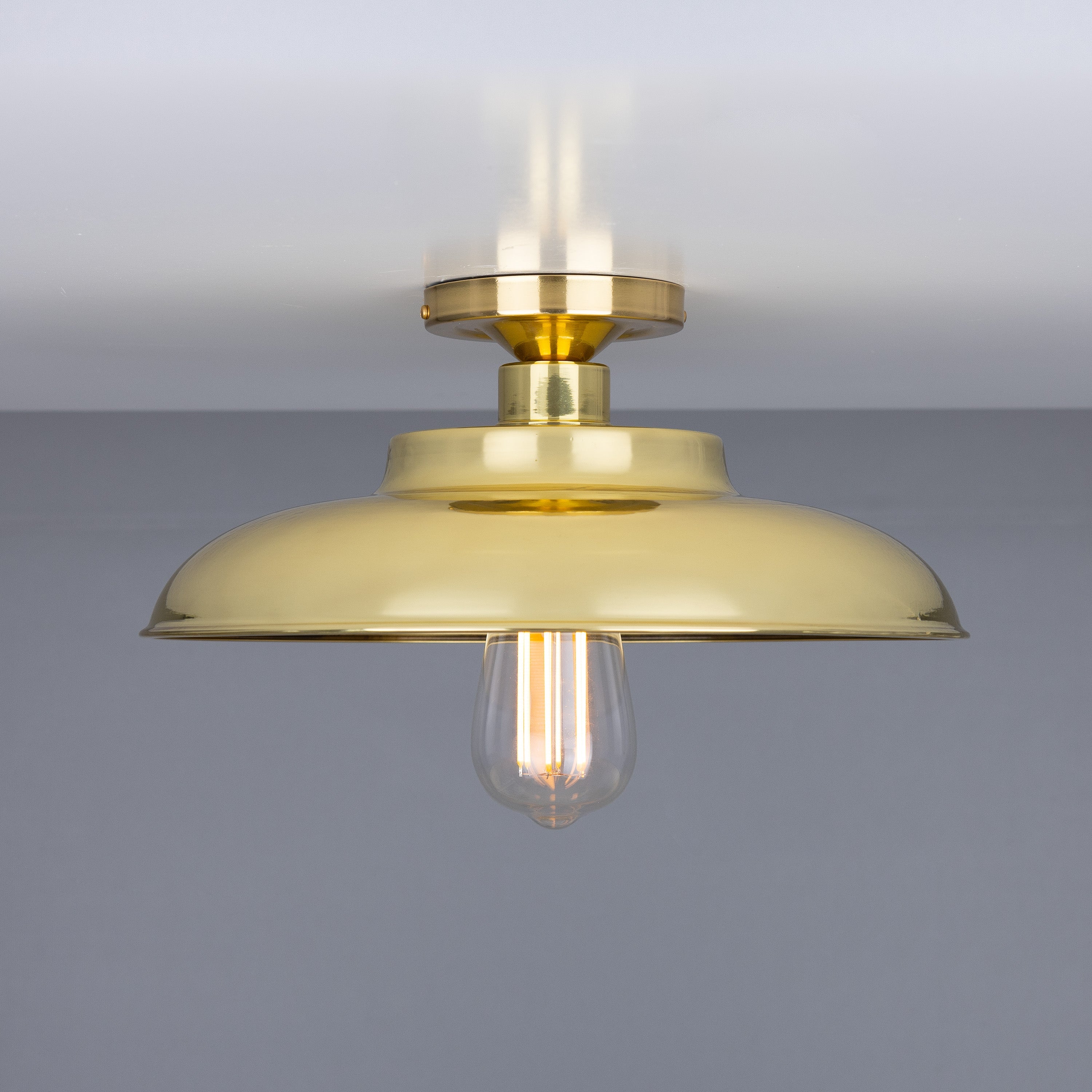 Telal Factory Ceiling Fitting by Mullan Lighting is a considered piece of designer lighting that translates industrial heritage into refined, contemporary interiors. The low-profile brass shade (32 cm Ø, 21 cm high) and handcrafted finish create a warm, textural focal point while maintaining a minimalist silhouette.