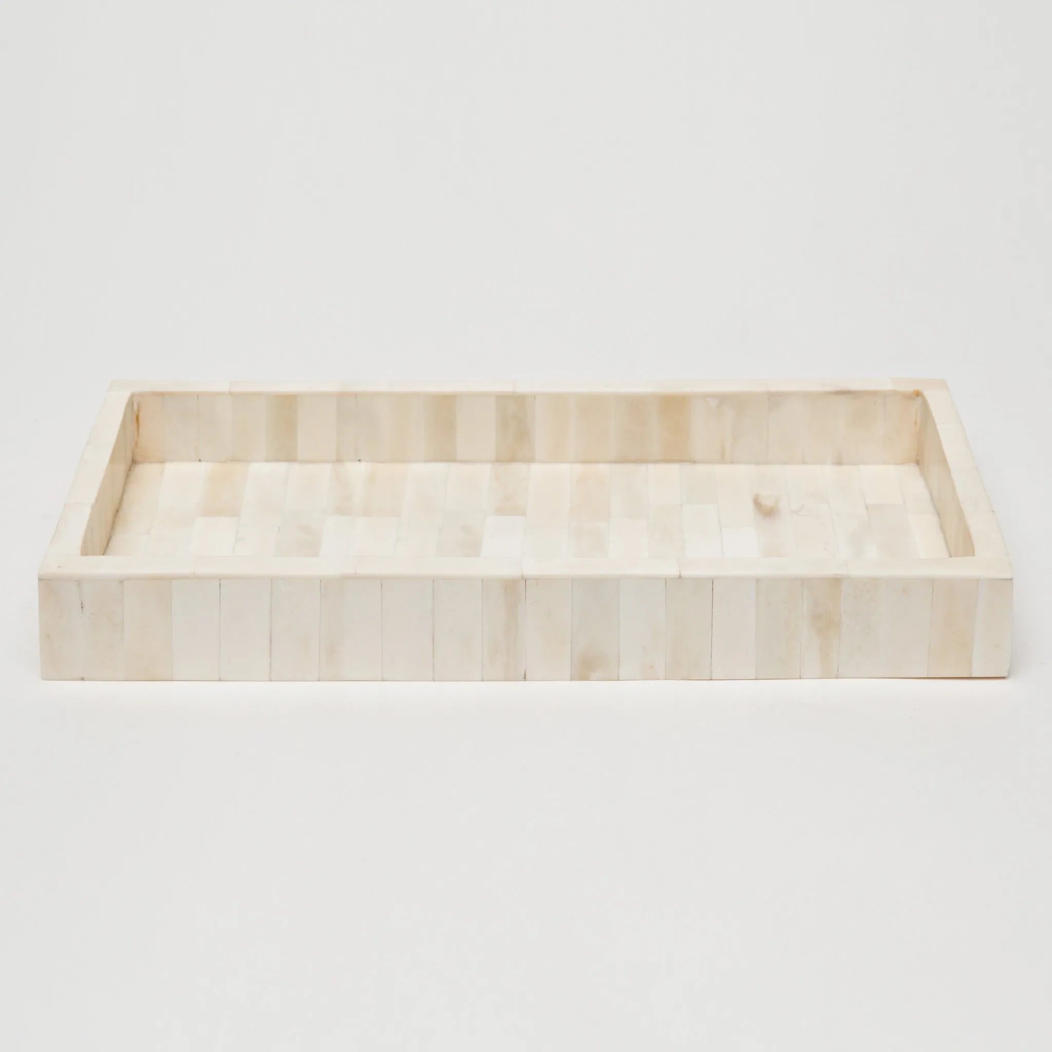 Natural camel bone bath collection. Open-sided tray and box storage sets available.