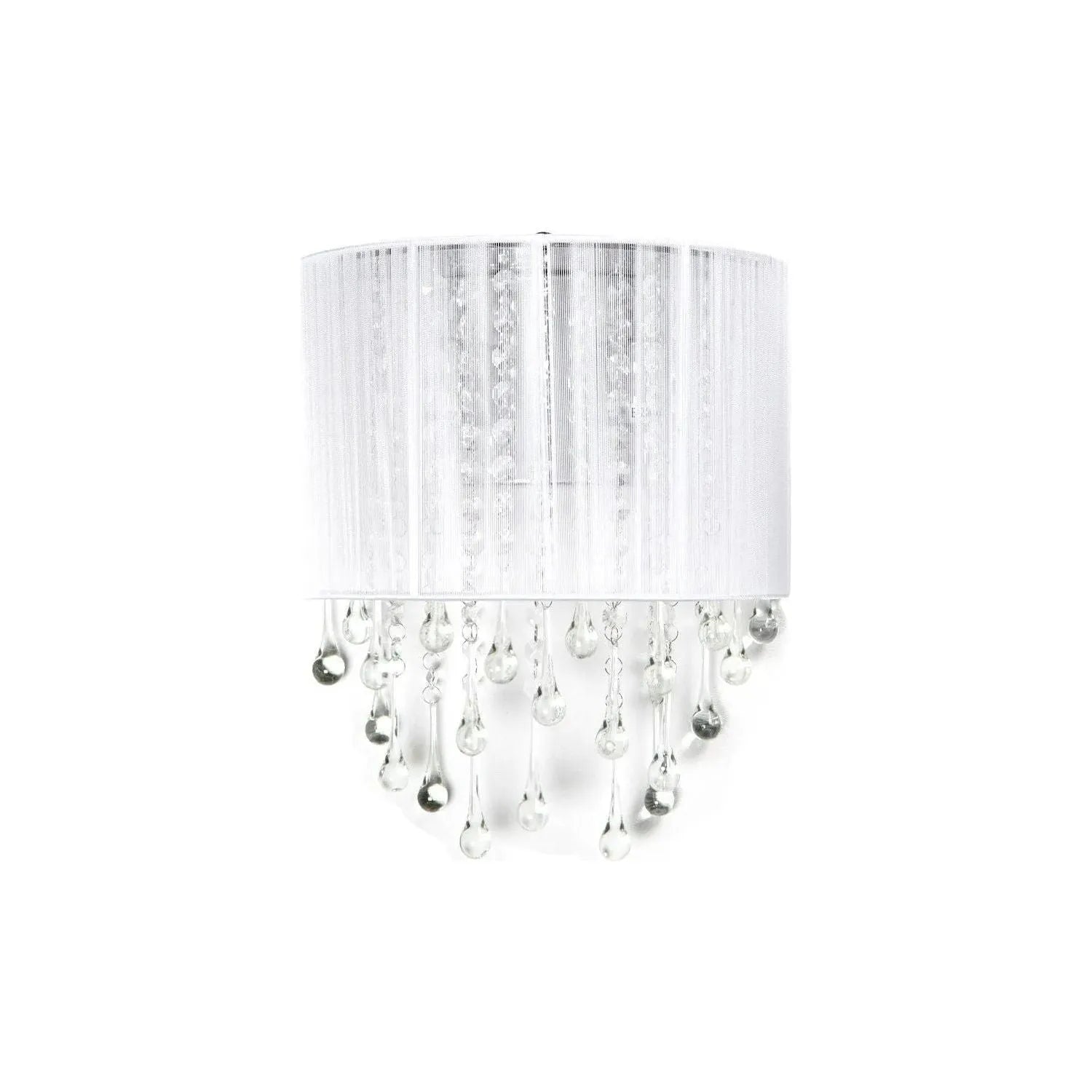 Bring a dramatic focal point to any area of your home with the unique round Beverly Dr. collection wall sconce's stunning style. Cut and polished crystals are held in place with stainless-steel rings and illuminated by brilliant halogen points of light and graced by a beautiful silk string shade.