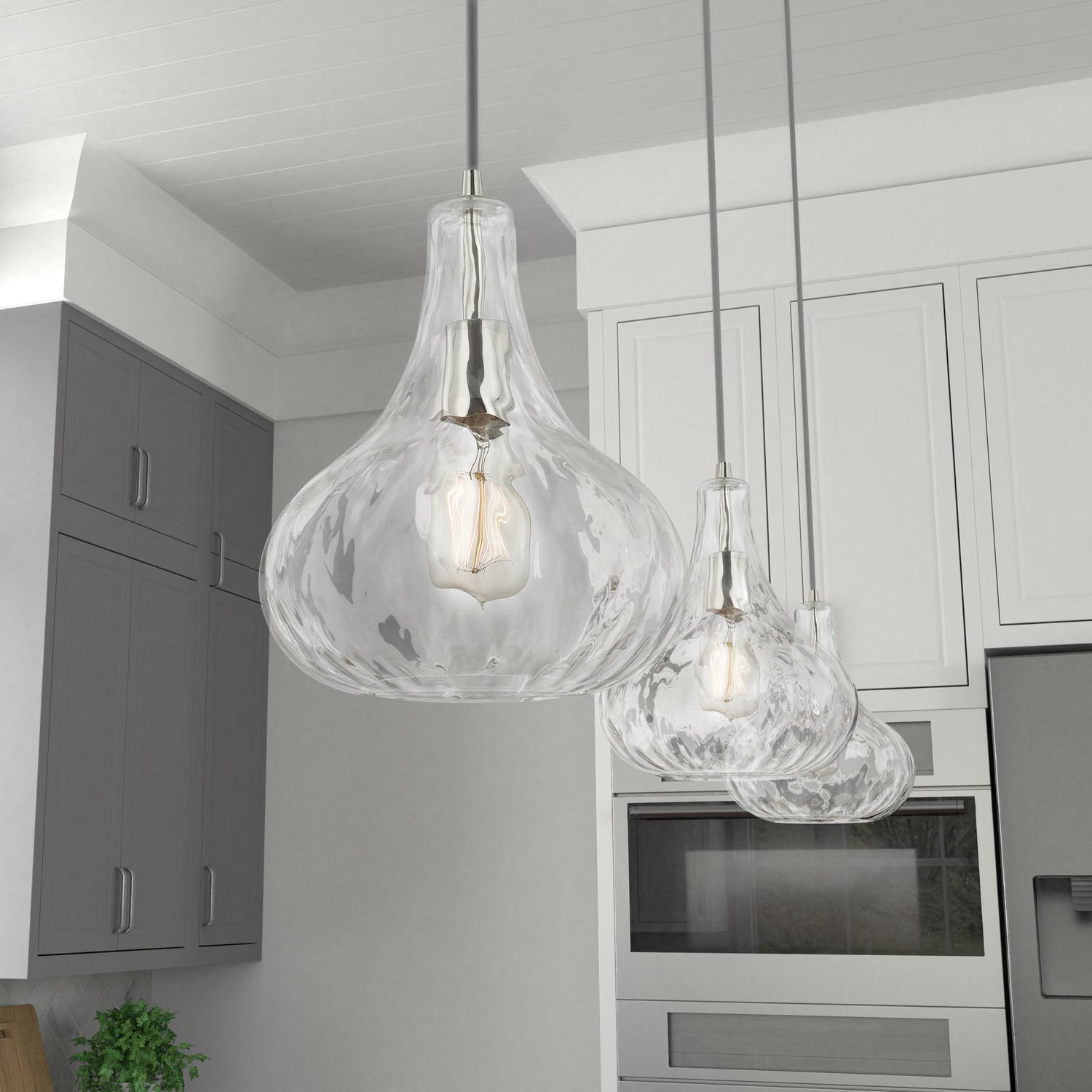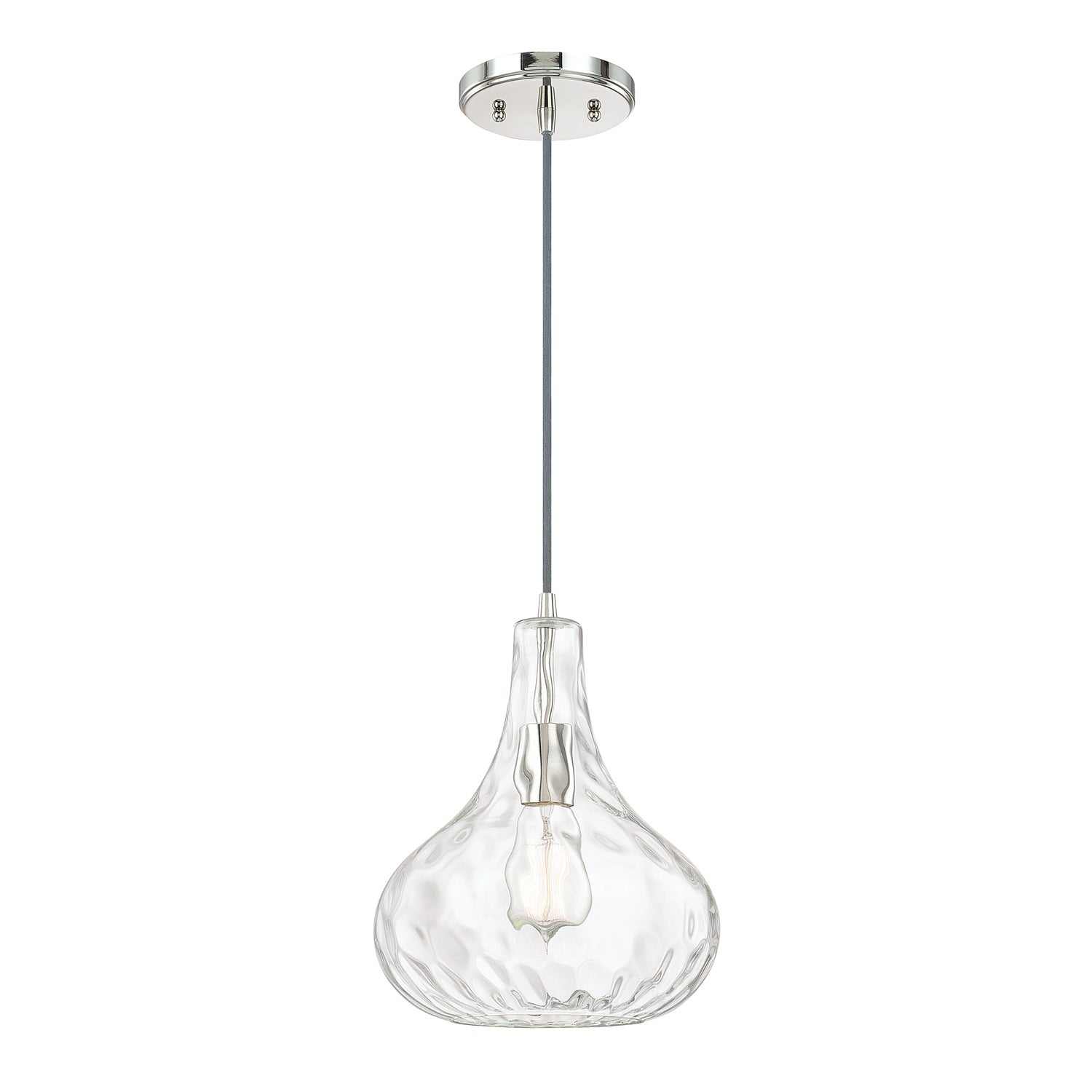 Inspired by a droplet in motion, the River Pendant captures fluid elegance with its simple style and chic curved lines. The textured water glass diffuses light into a distinctive glow, while the Polished Nickel finish delivers bright, contemporary shine that elevates any space.