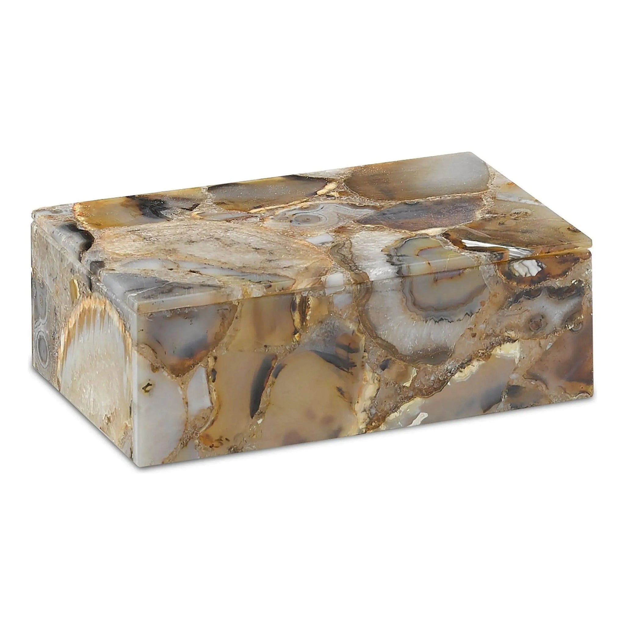 Made of black agate, the Malaga Large Box is a clean-lined design with a snug fitting top in natural stone patterning. Pair the decorative agate box with the Malaga Small Box to see how they stack so beautifully.