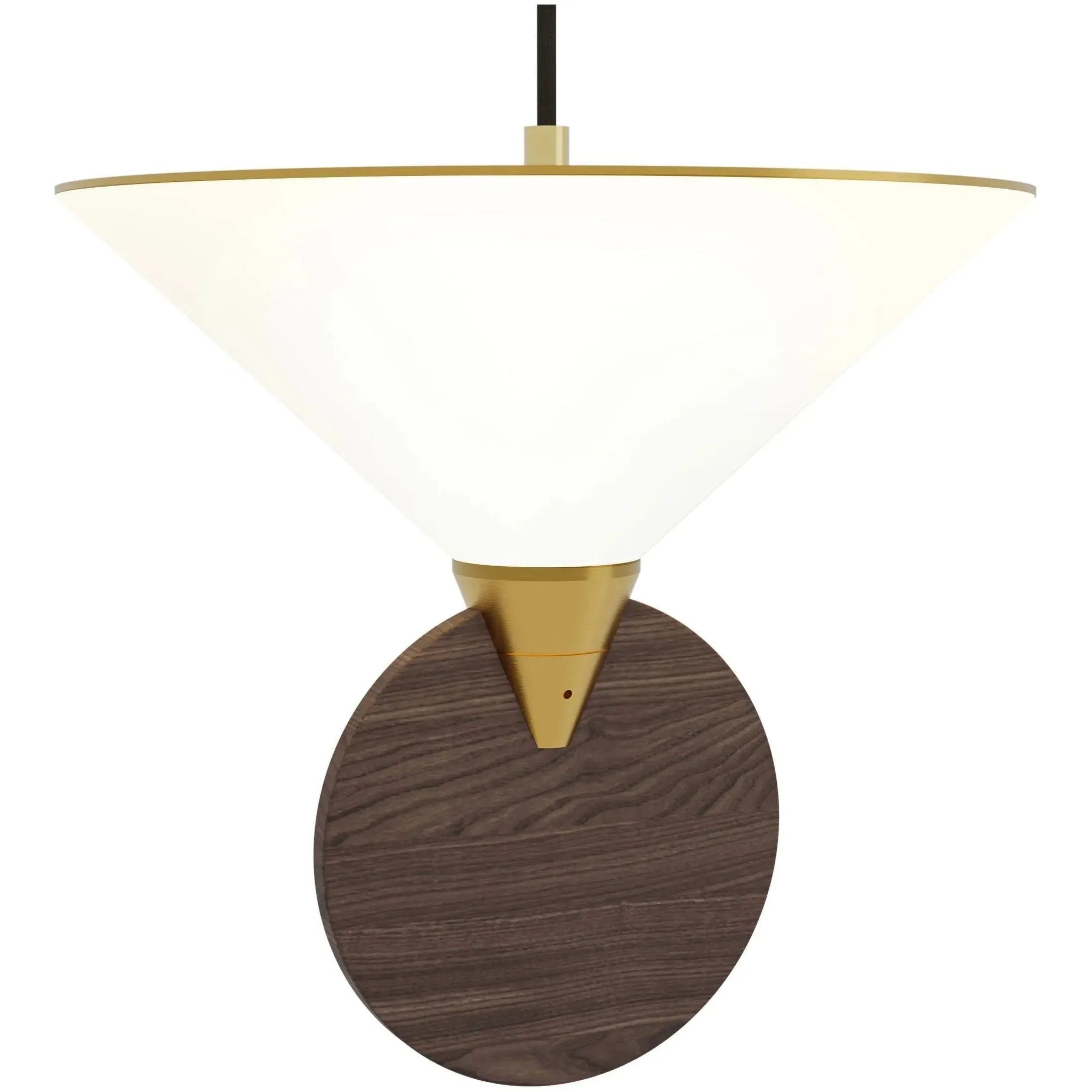 The Compass Pendant features a conical glass diffuser accented by a circular disc in solid walnut or marble for a modern, geometric aesthetic. The combination of luxe materials and natural textures creates a warm expression that will elevate any interior's decor.