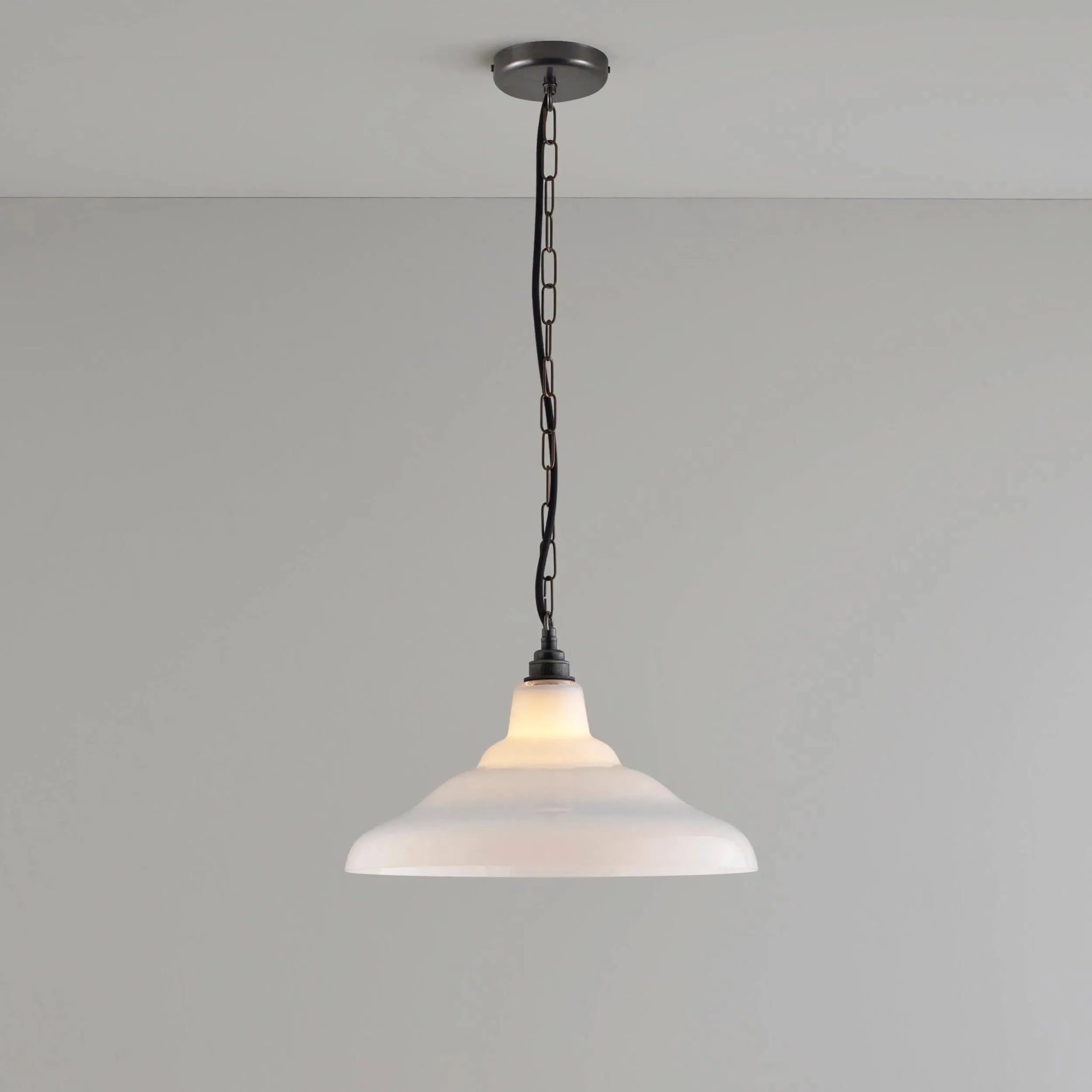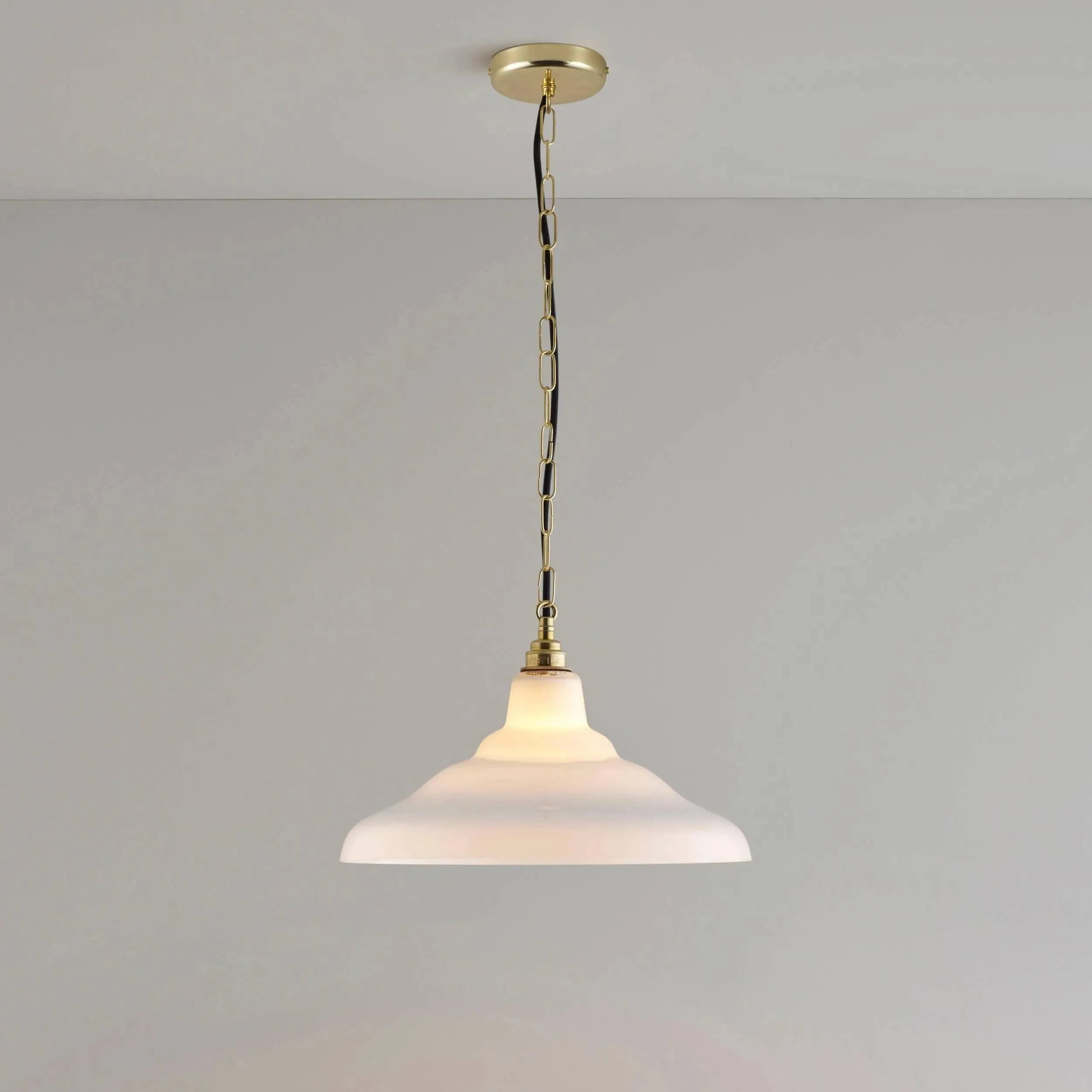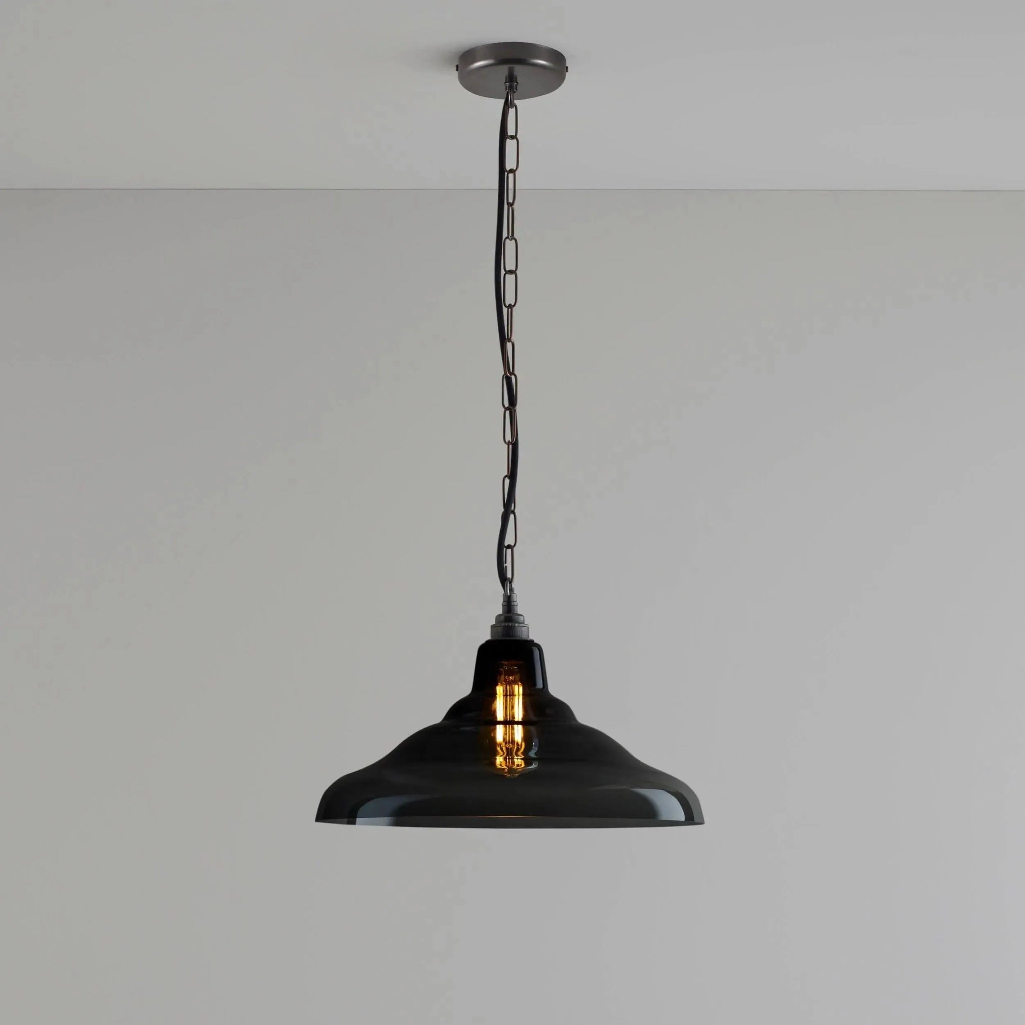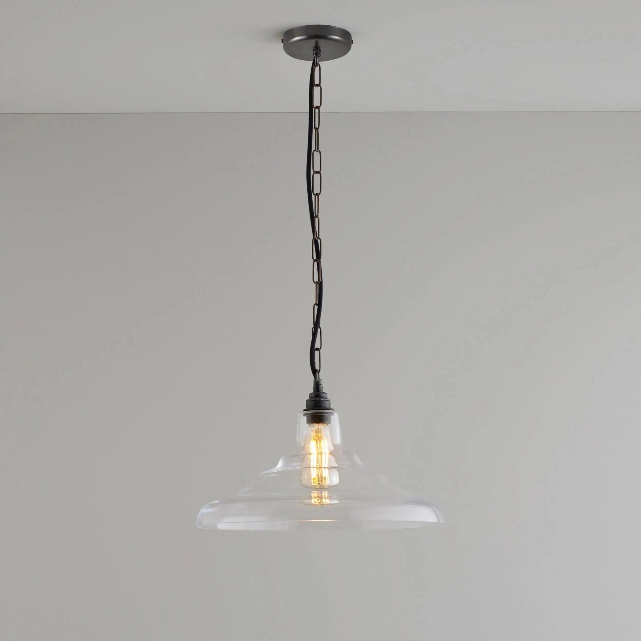 Davey Lighting's iconic School Light form has been repurposed in anthracite, opal and clear glass, giving the classic design a new and fresh dimension. Now available in two sizes, each glass shade is hand blown in our glass factory, and fitted with an attractive brass or weathered brass chain and ceiling rose. The anthracite and clear glass shades show off the filament exposed light bulb, a trend that continues to evolve.
