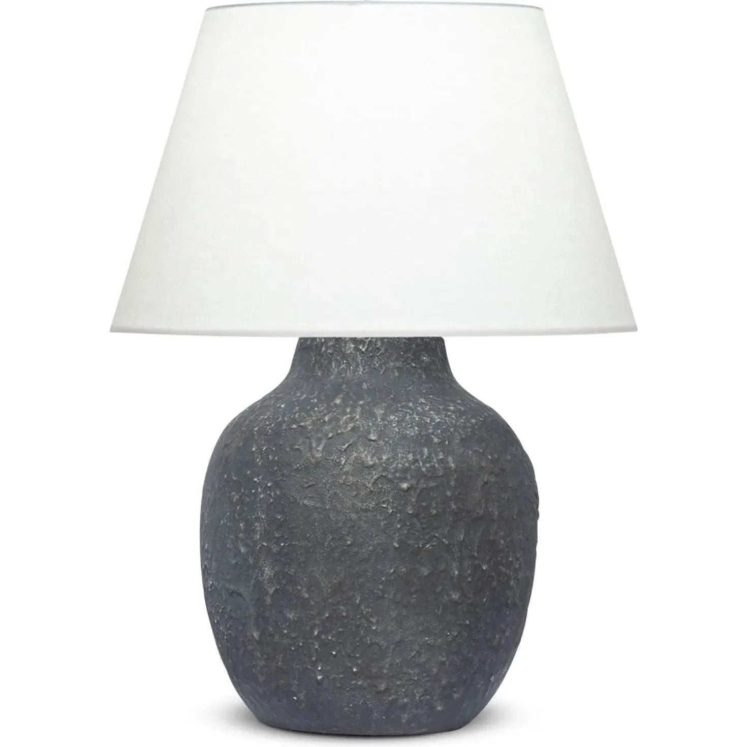 Artfully combining different textures, the voluptuous ceramic base of this diminutive lamp has a mottled effect and is crowned by a crisp off-white linen shade. A chic and understated addition to any modern living room.