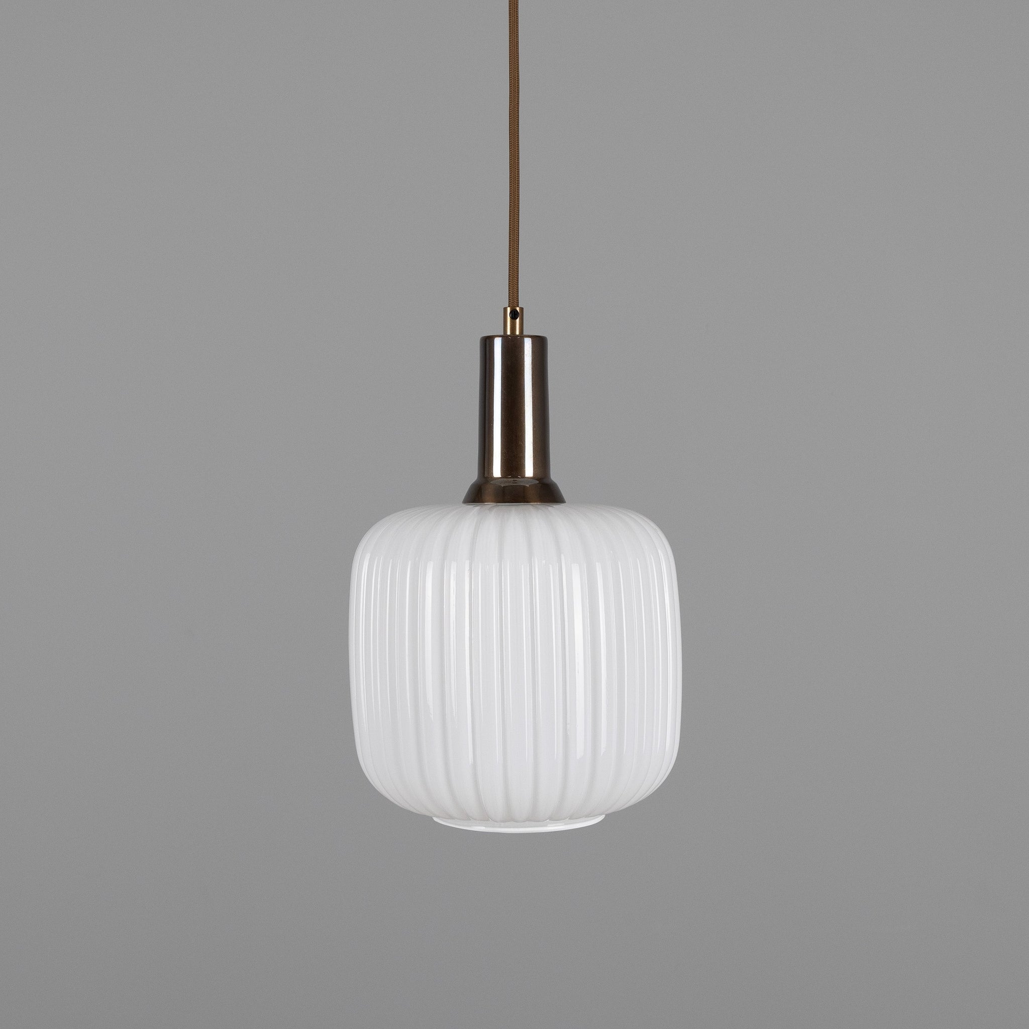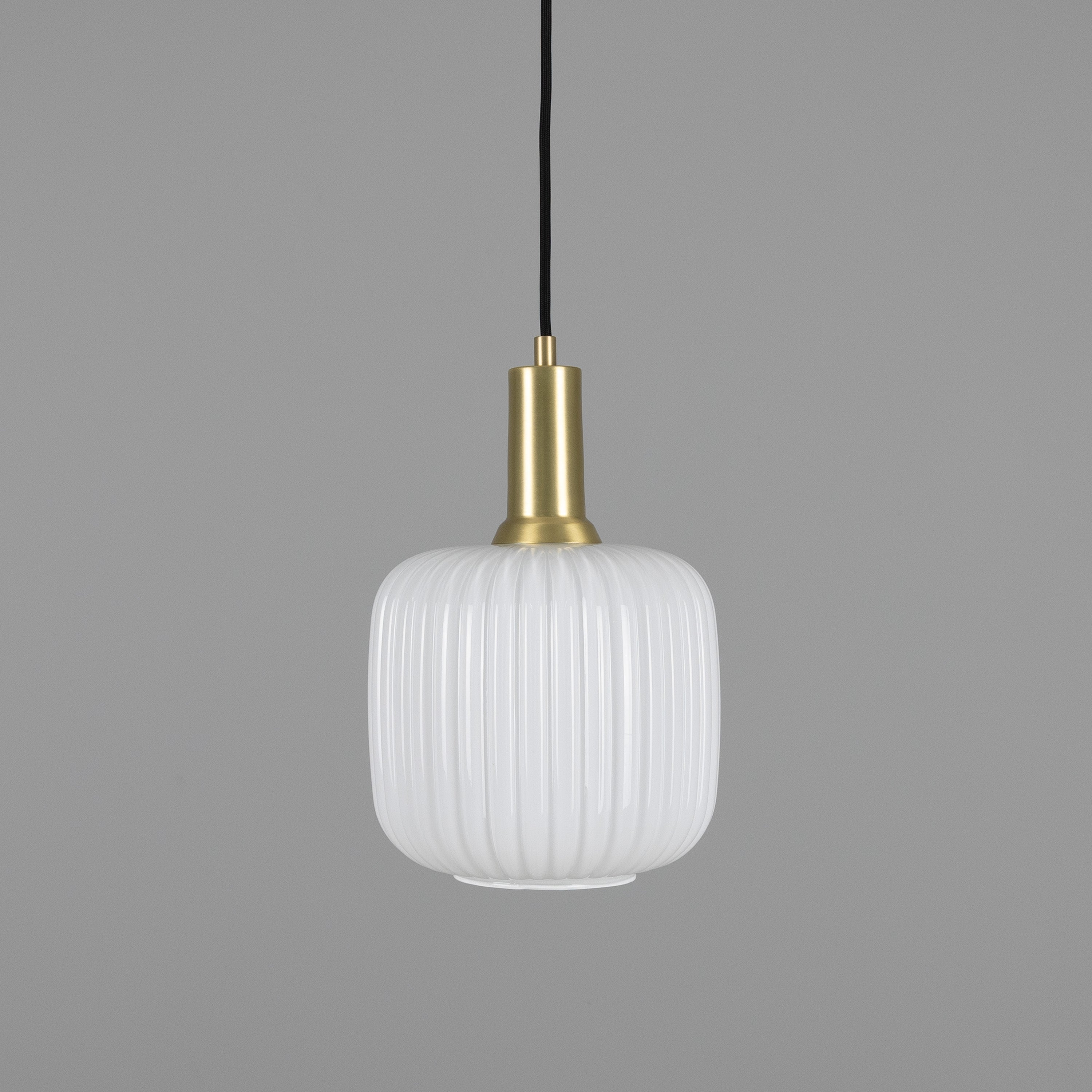 Nahla Pendant by Mullan Lighting is a considered piece of designer lighting that balances sculptural form with refined function. A hand-formed opaline glass shade with vertical fluting softens and directs light, while a slim metallic collar and fabric cord provide a tailored, contemporary silhouette ideal for curated interiors.