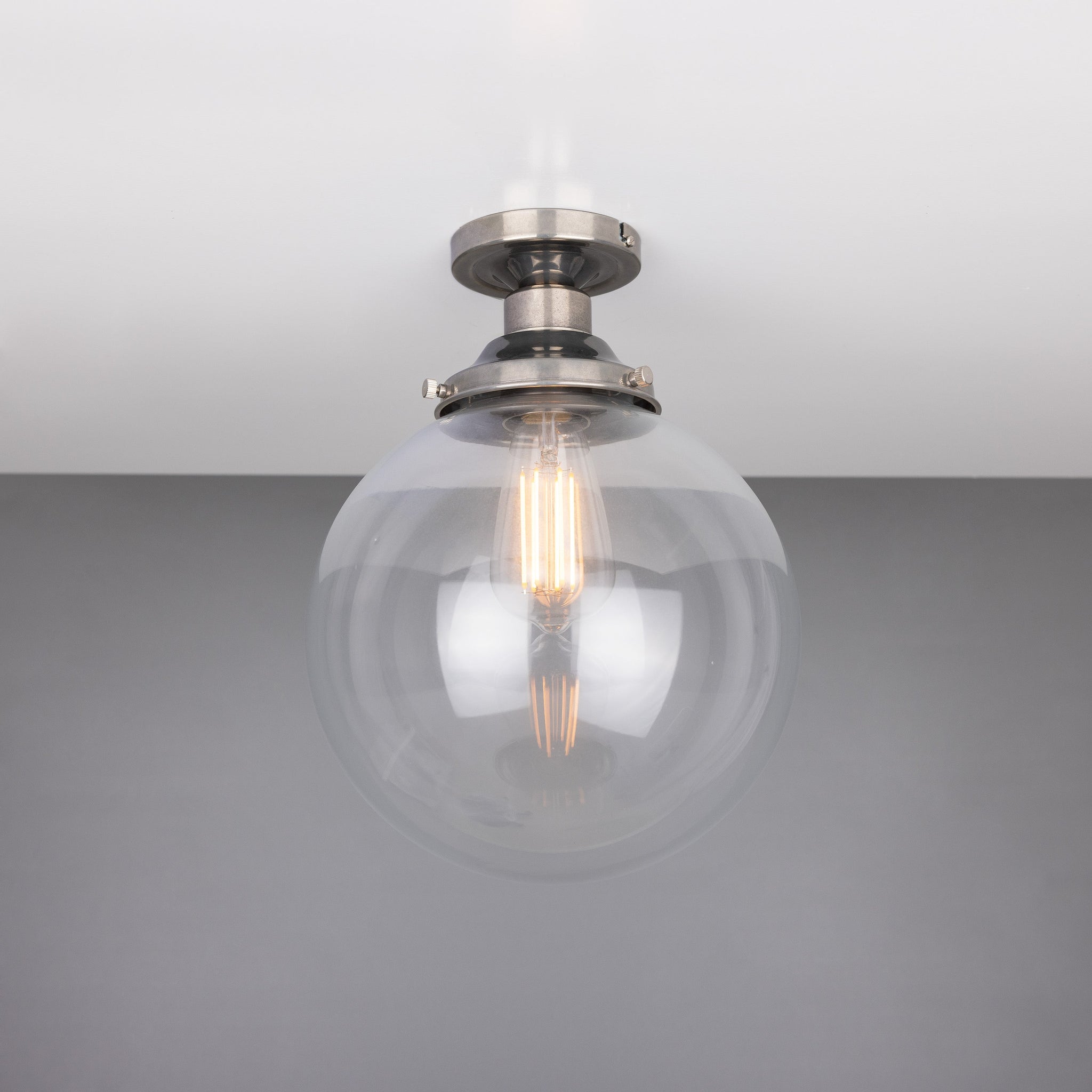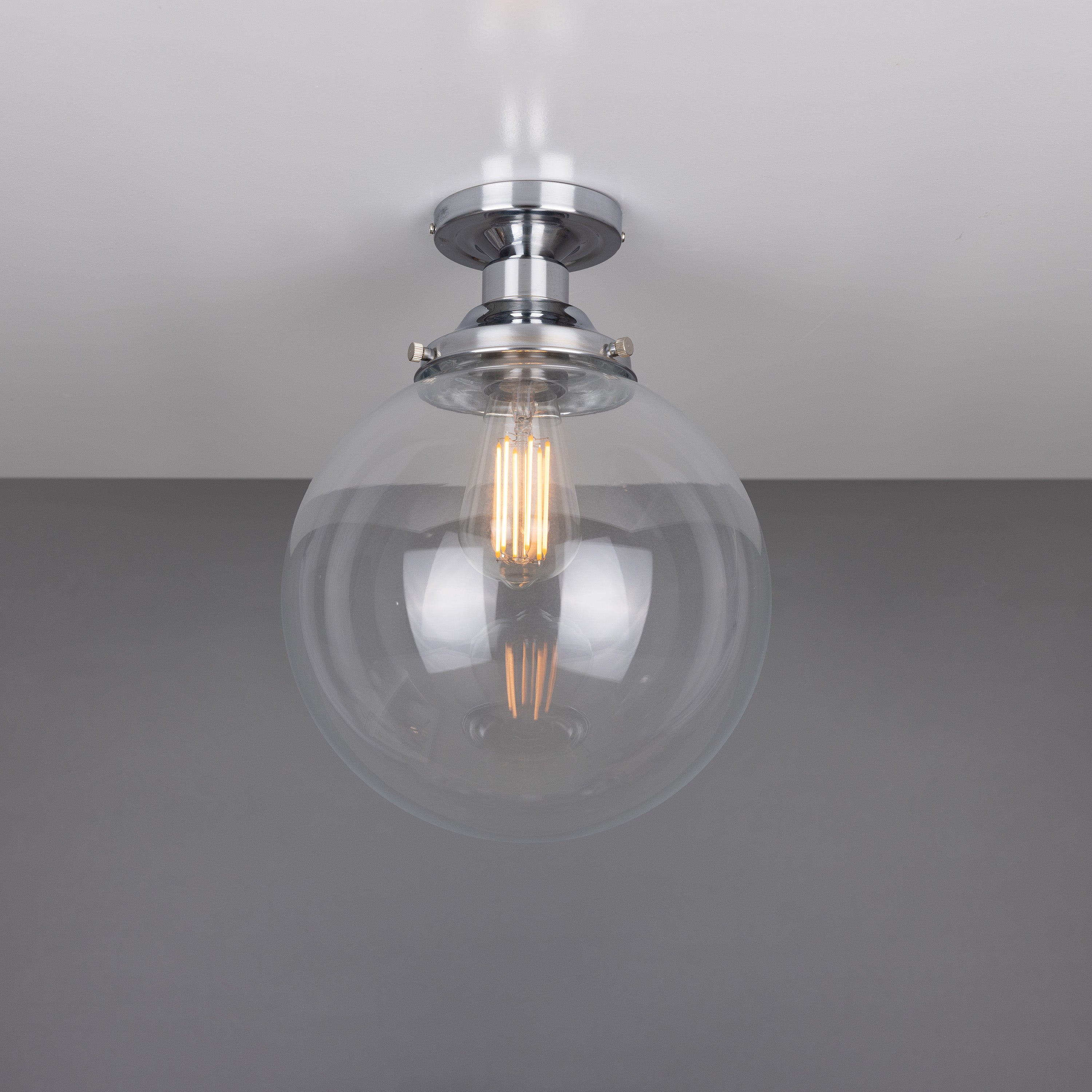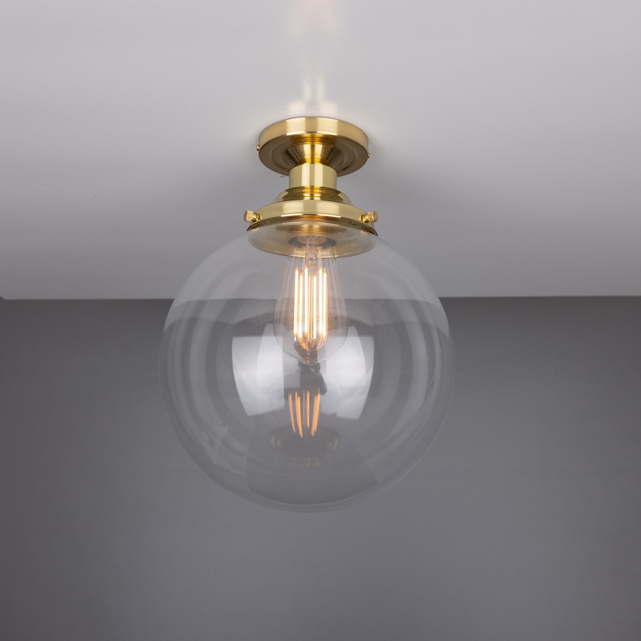 Crafted with hand-blown clear glass and a solid metal ceiling plate, the 25cm sphere delivers even, glare-controlled illumination while exposing an elegant bulb for visual warmth. The compact profile suits low ceilings and tight plans without compromising presence.