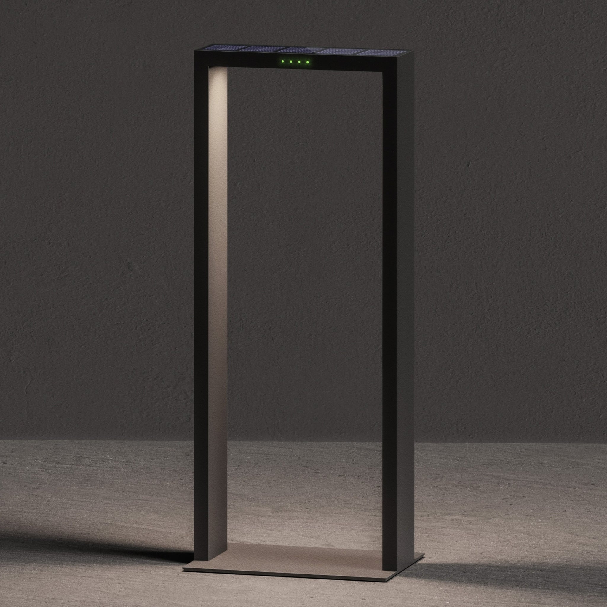 LED solar lamp Daylight sensor: - activate at < 50 lux - turn off at > 50 lux IP65 Materials: - die-casting aluminum, extruded aluminum - thermosetting epoxy polyester powder coating - stainless steel screws - clear glass diffuser Salt spray corrosion test: 800h Charging time: 10-12h Working time: 19-21h Power: 2.2W Lithium Batter y: 3000 mAh (replaceable) Batter y level indicator Solar panel: - 2.5W monocrystaline - tempered glass LED: Lumileds 4014 Light color temperature: 3000K CRI>80