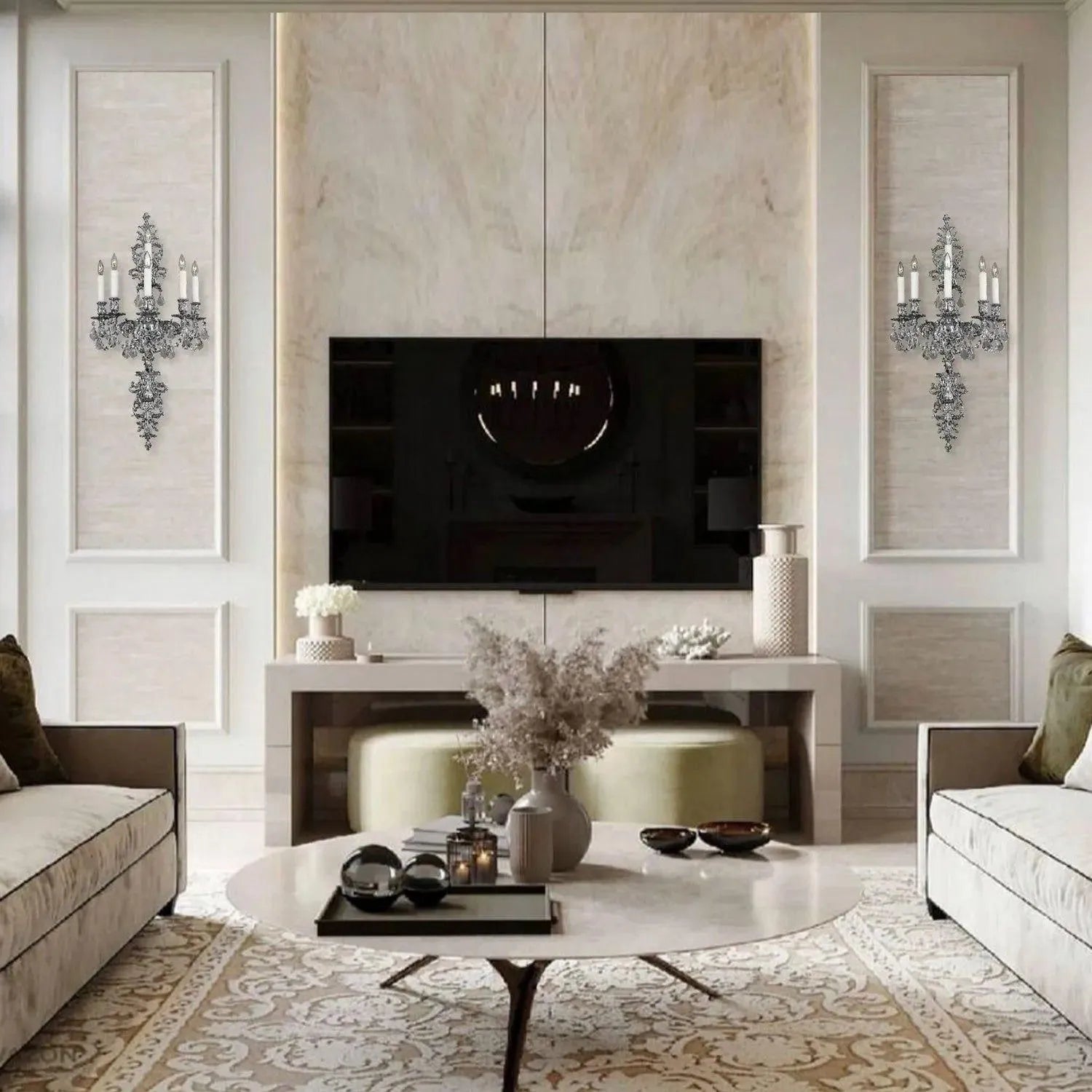Brass and Crystal Wall Sconce WS9491 by American Brass & Crystal is a statement lighting piece that balances sculptural form with refined detail. Its ornate brass backplate and armature frame hand-faceted crystal drops and candle-style sockets to deliver layered, reflective light ideal for entryways, galleries, and hospitality settings.