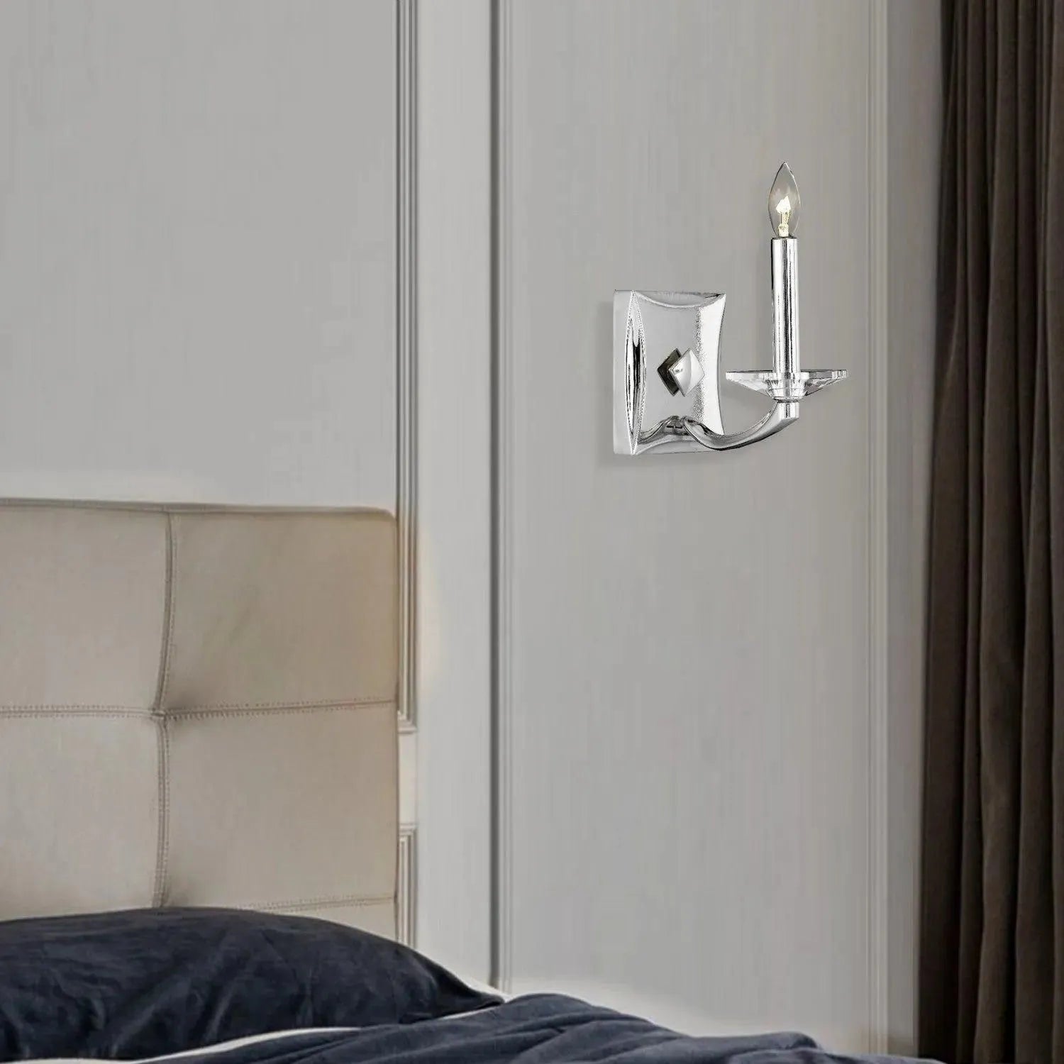 Designed for elevated interiors, the Kensington Brass and Crystal Wall Sconce by American Brass & Crystal pairs refined form with purposeful function. A slender, candlestick arm rises from a sculpted backplate to a precision-cut crystal bobeche, creating a focused pool of light and subtle refracted highlights that suit luxury décor and designer lighting schemes.