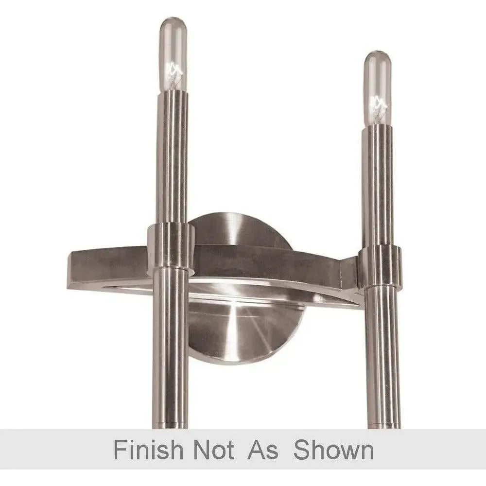 Artcraft Lighting Encore Two Light Wall Mount refines minimalist form into a sculptural wall fixture: two precise, thin candle columns rise from an airy circular frame to create a linear, architectural profile that complements curated interiors.