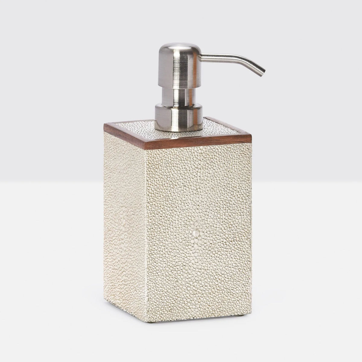 Every piece is crafted to highlight the natural eye pattern inspired by authentic shagreen, and topped with a veneer trim.