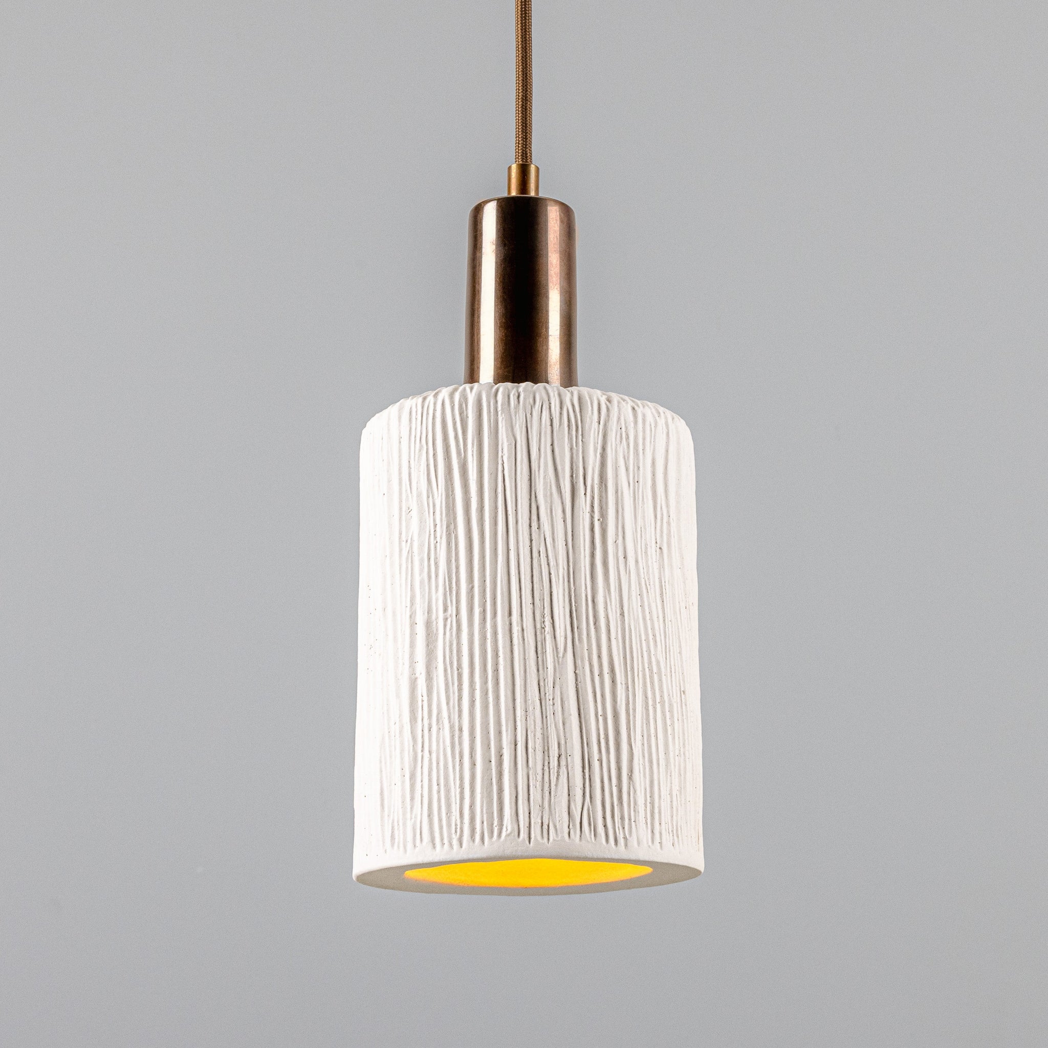 Senna Pendant from Mullan Lighting is a considered study in material contrast: a hand-crafted, crackle-glazed ceramic cylinder suspended from a tall brass lamp holder to deliver focused task light with sculptural presence. Designed for interiors that prioritise texture and restraint, it reads equally well over kitchen islands, bedside nightstands or in boutique hospitality settings.