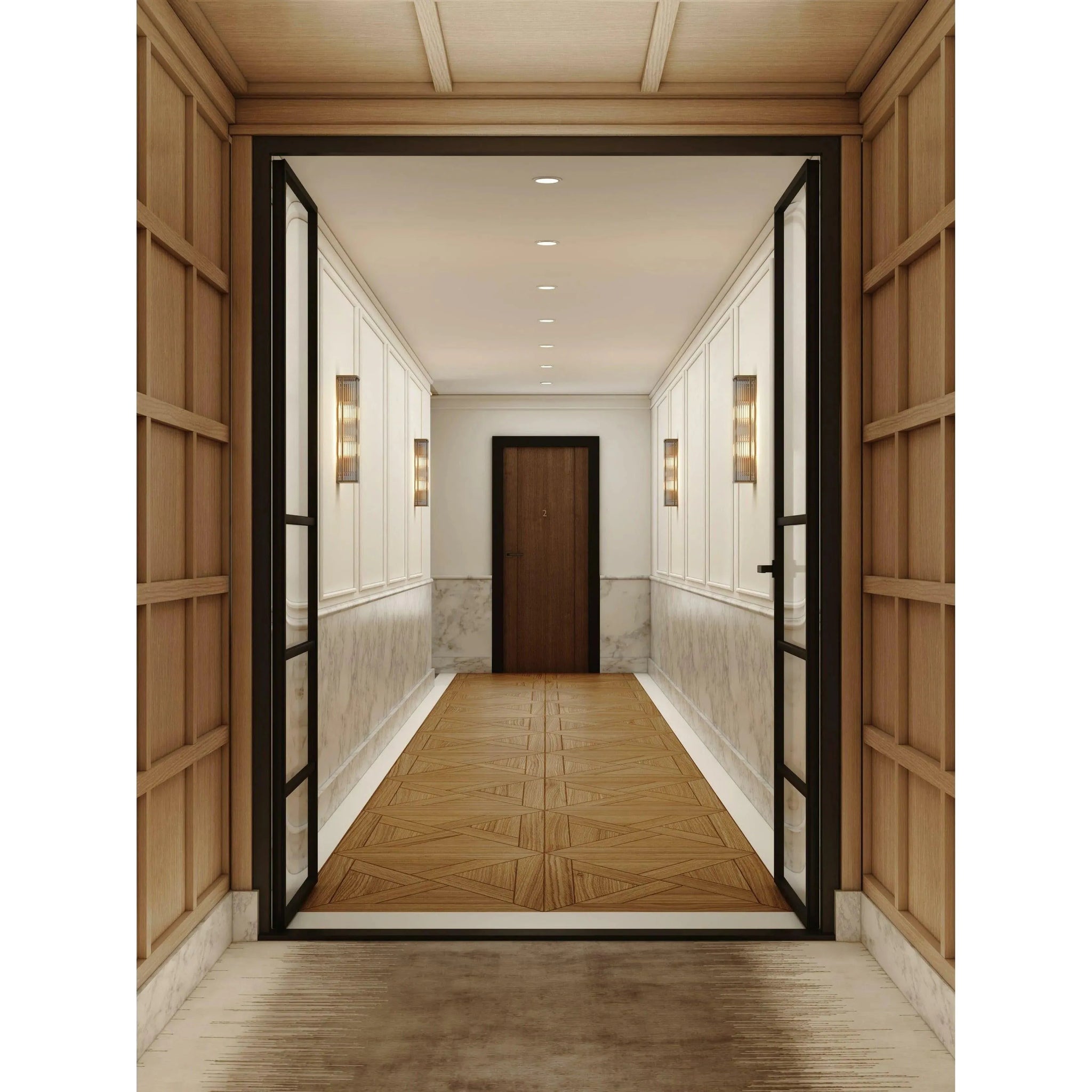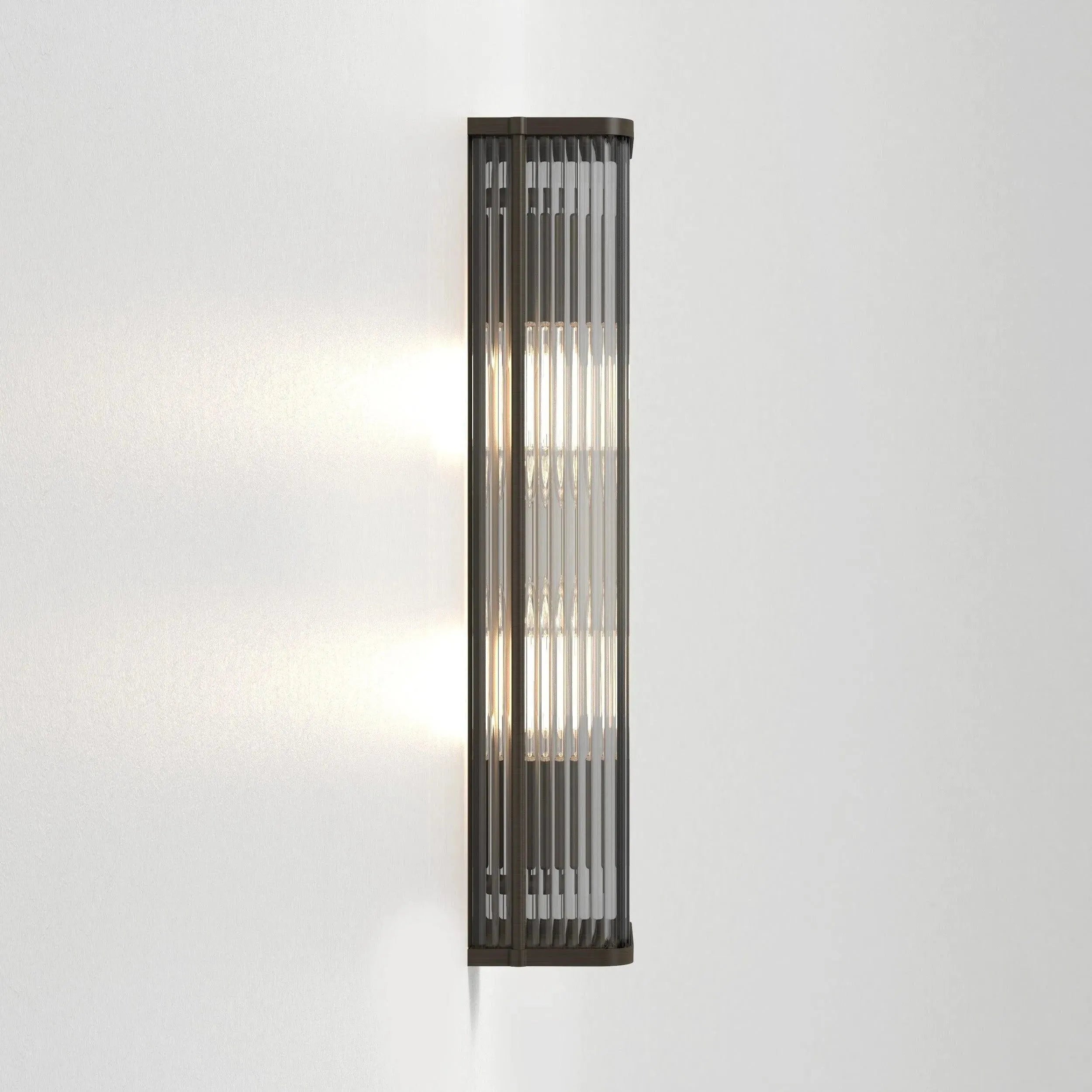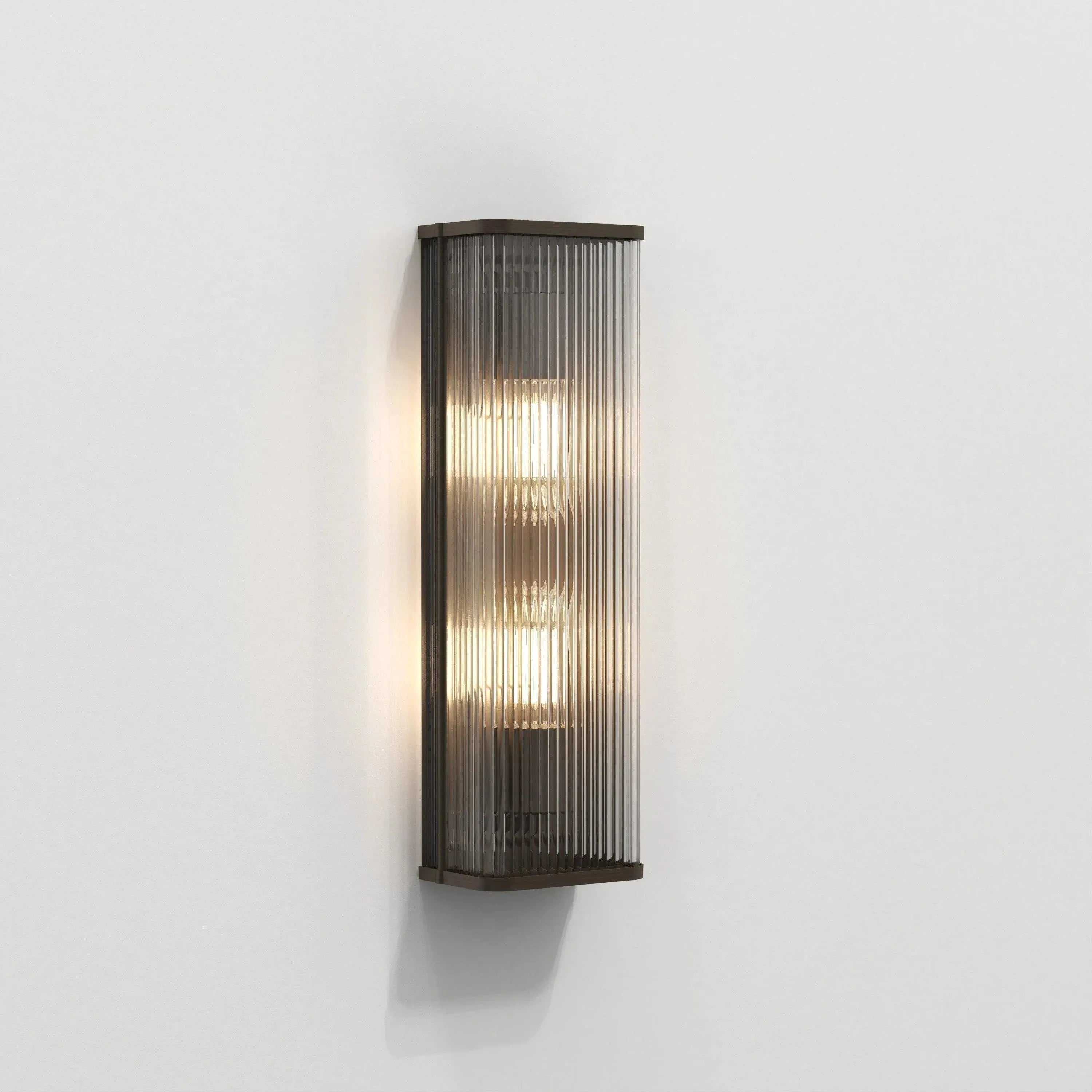 Designed for refined interiors, the Avignon Square 500 Wall Light by Astro Lighting pairs sculptural form with precise function. Its tall, slender profile and ribbed glass front create a vertical wash of soft, diffused light that defines corridors, living walls and bespoke hospitality settings.