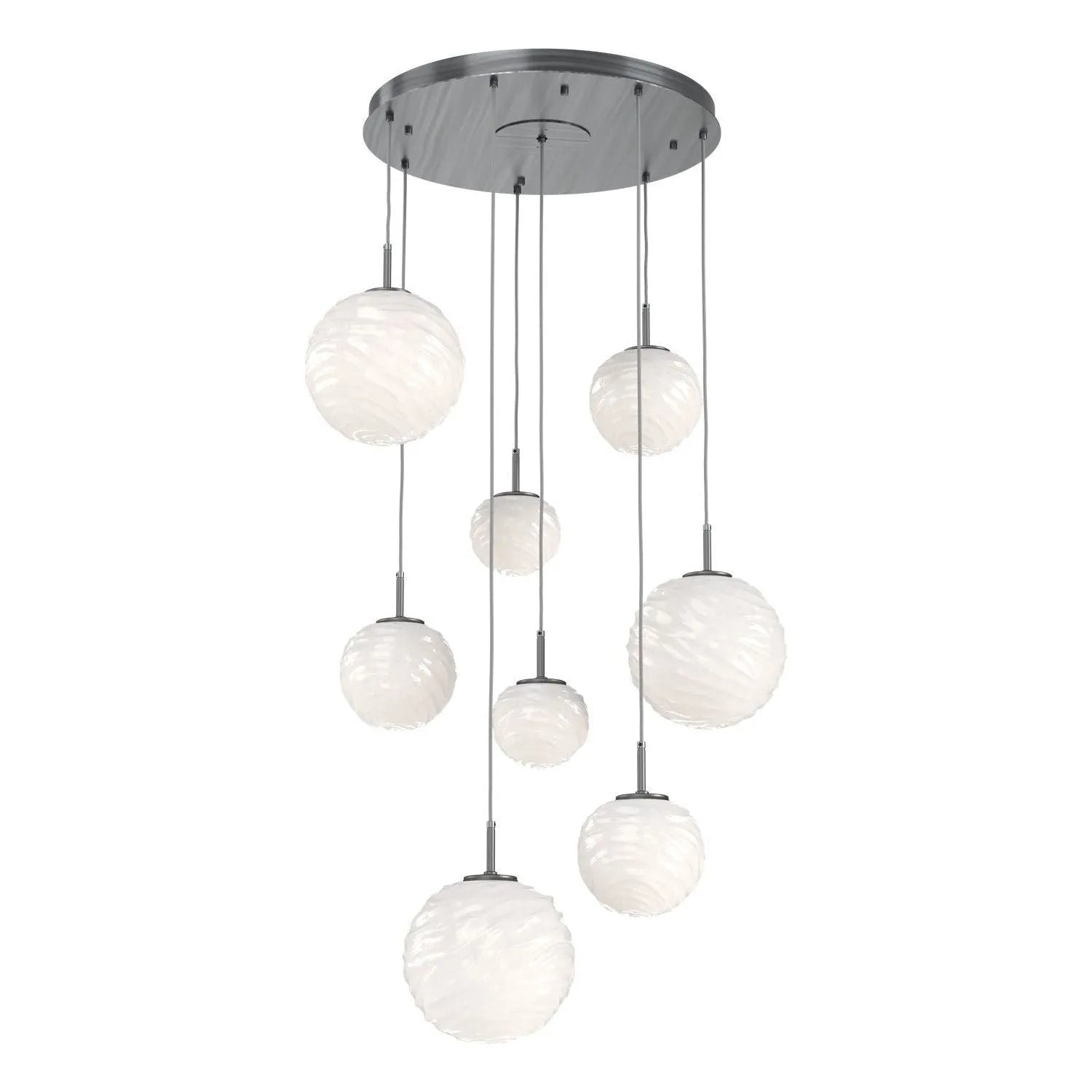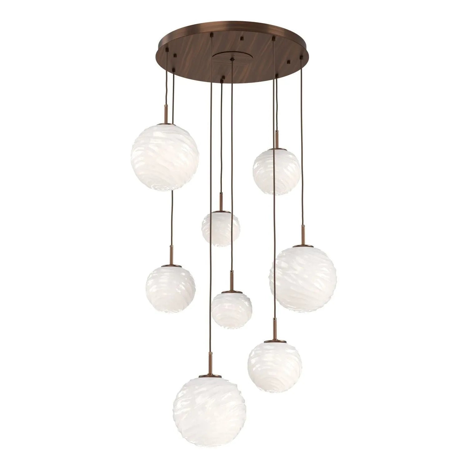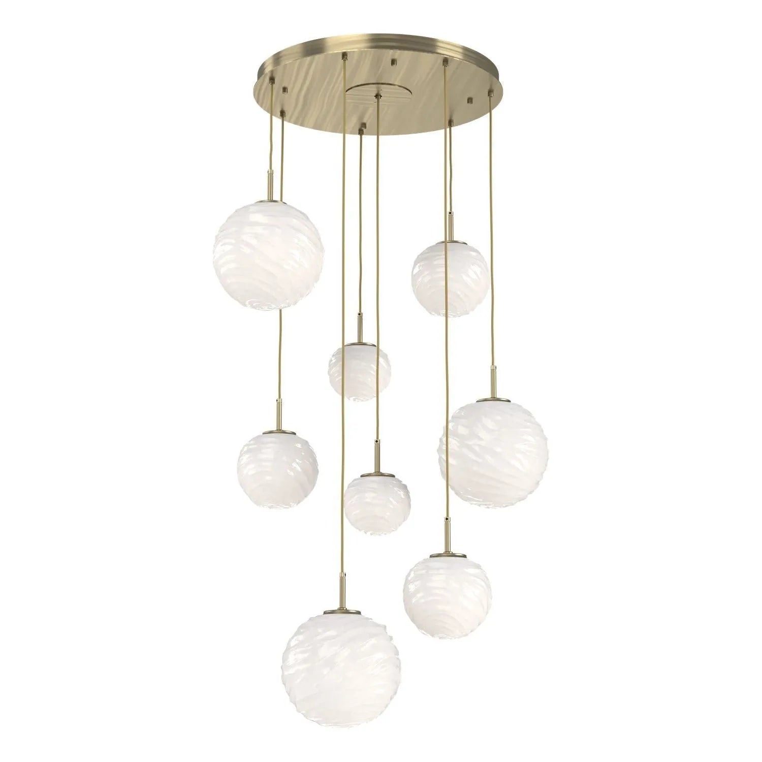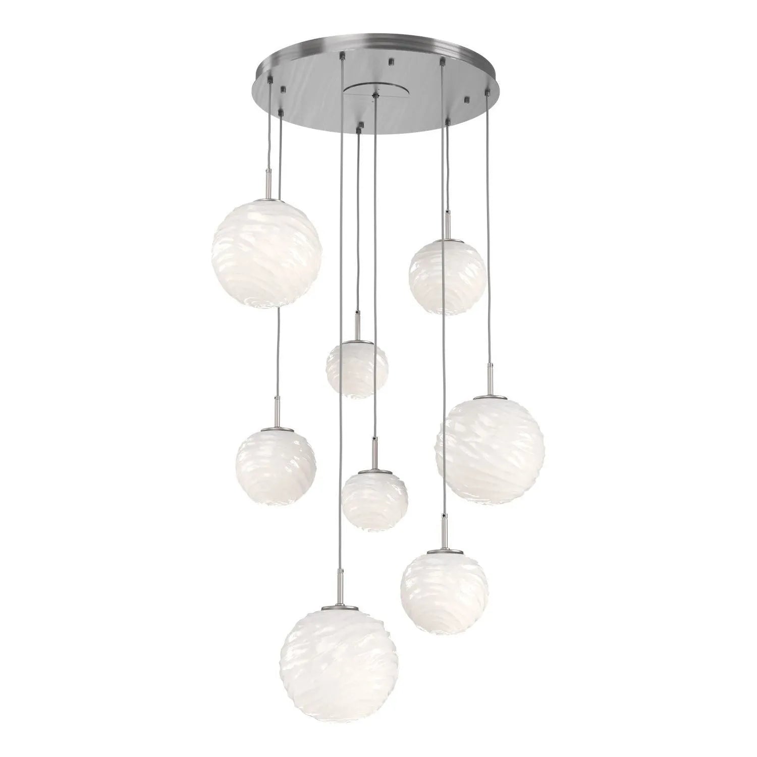Featuring beautifully contoured orbs of hand-blown lead-free crystal, the Gaia round multi-pendant chandelier elevates the familiar round glass shade to a modern organic interpretation of the natural world. Gaia lighting is illuminated with 93+ CRI integrated LED and includes a choice of glass colors, finishes and color temperature options.