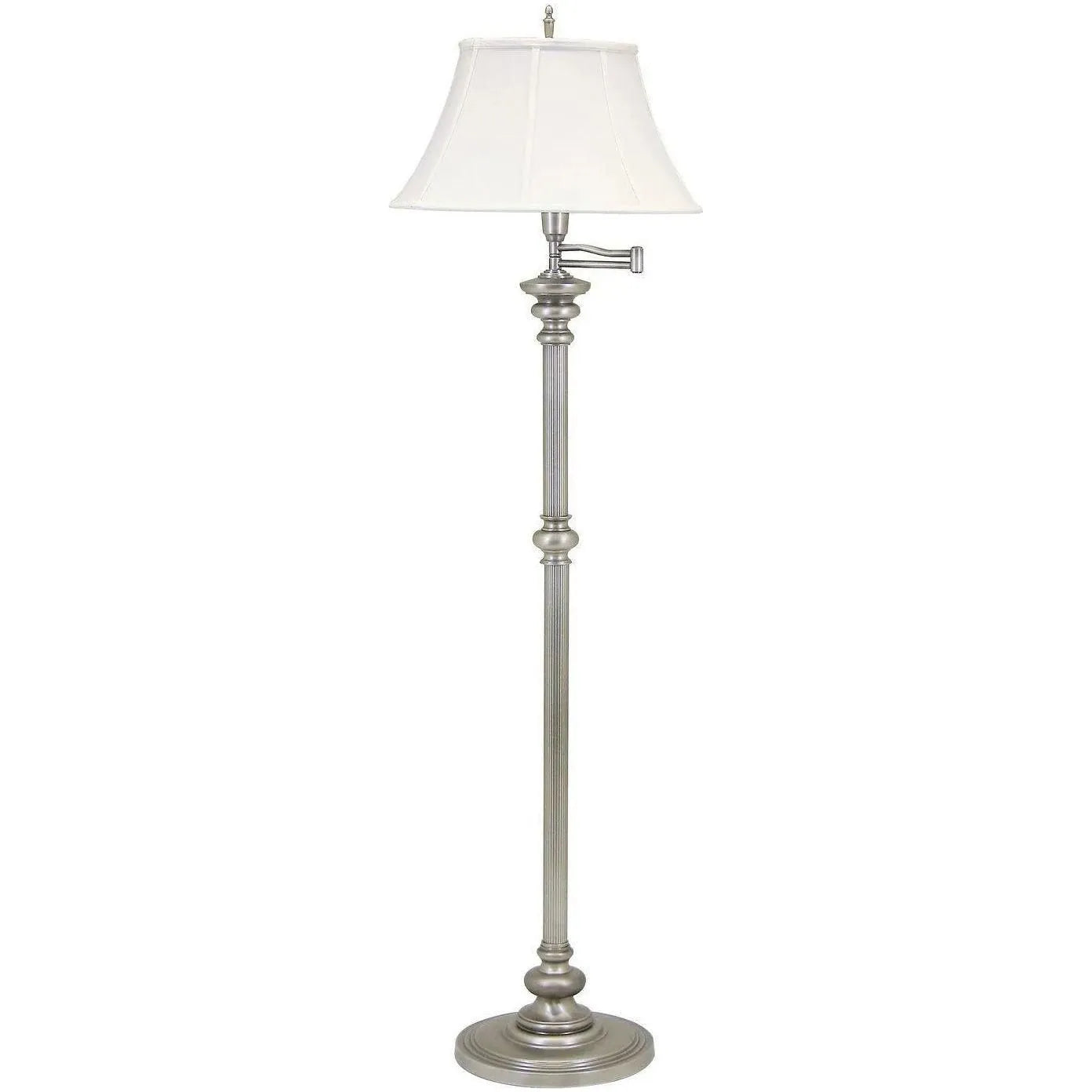 Designed with an integrated swing arm for precise task lighting and topped with a tailored bell fabric shade, this one-light floor lamp balances ambient illumination with directional function. The lamp's clean silhouette and classic details make it an effortless fit for modern, transitional, or minimalist interiors.
