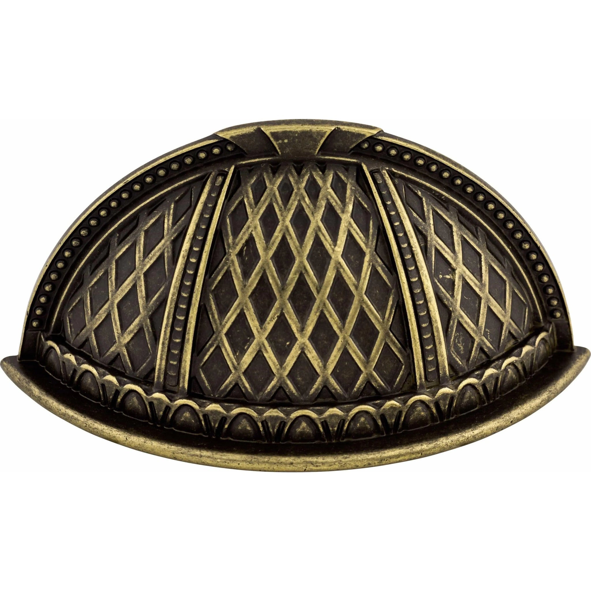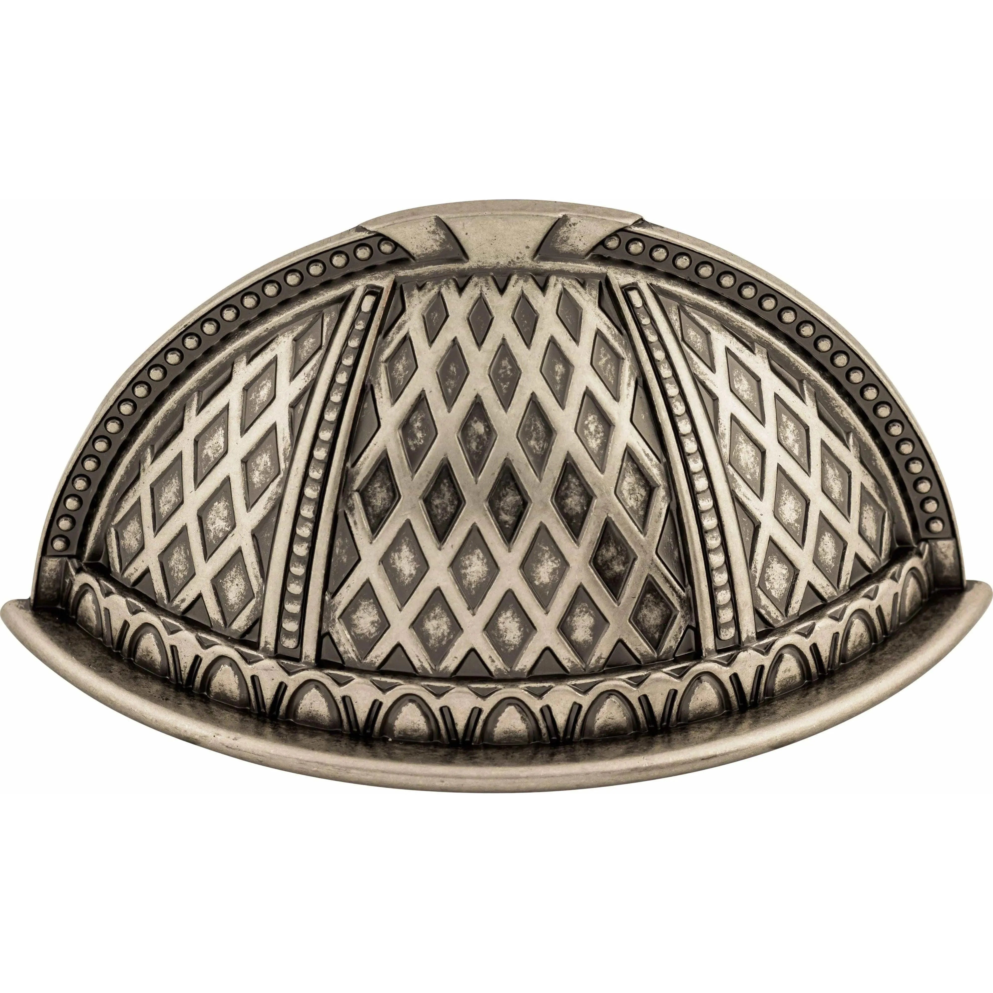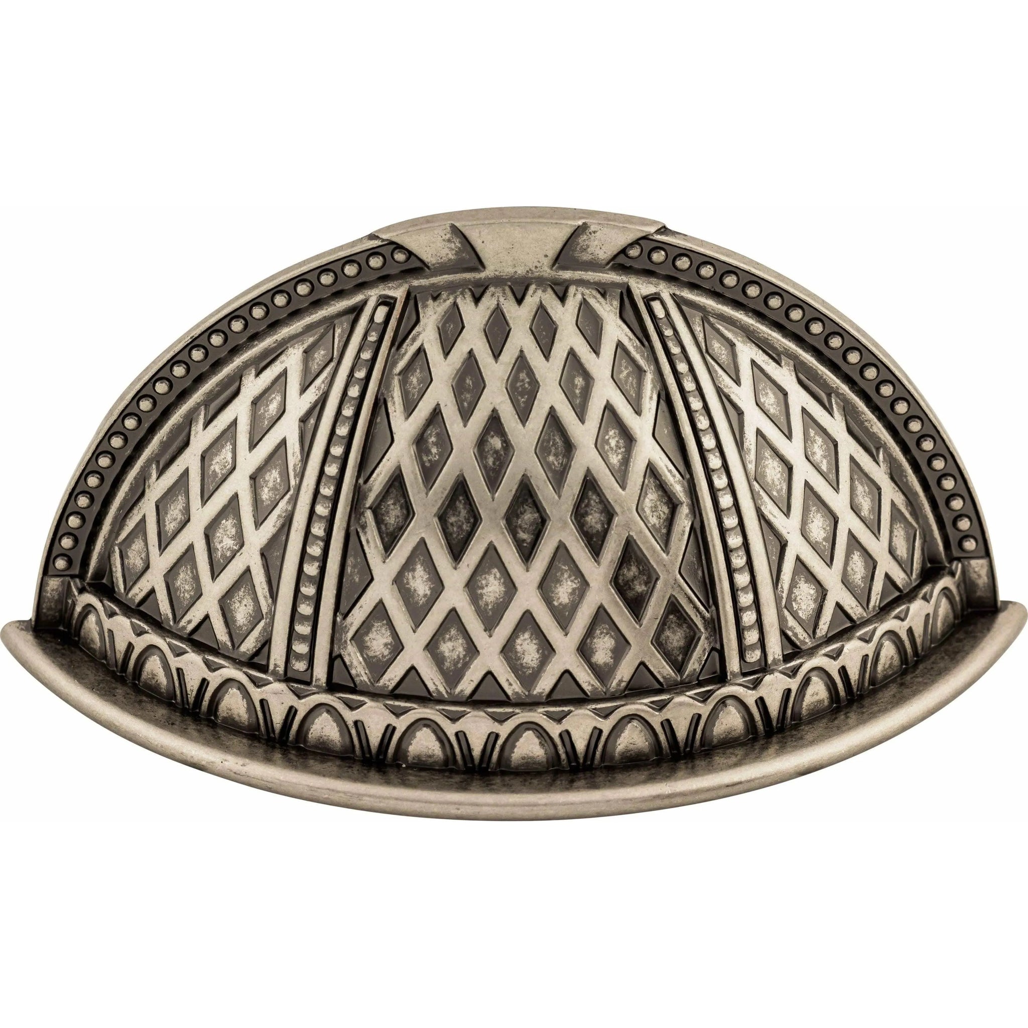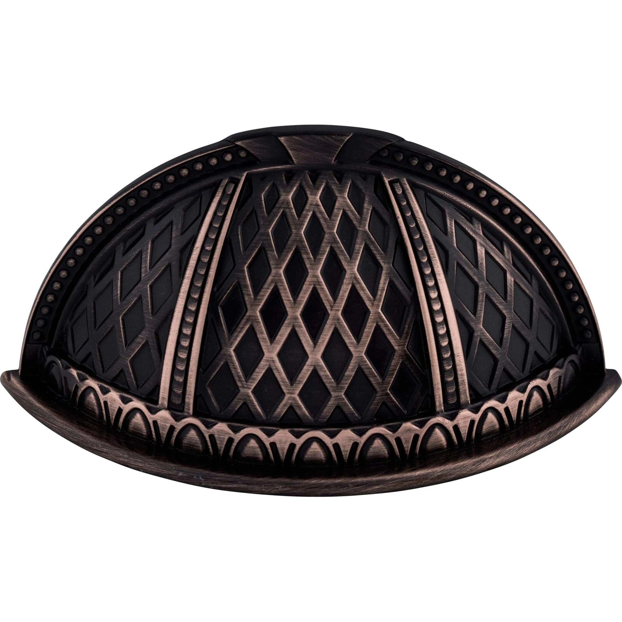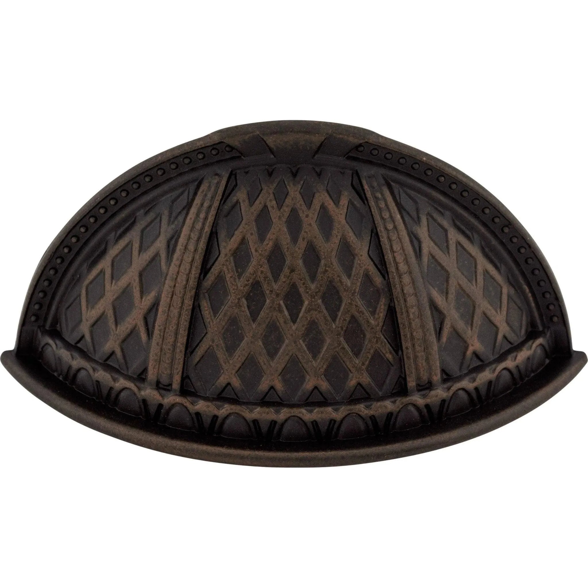Trevi Cup Pull from Top Knobs is a finely crafted cabinet pull that elevates cabinetry with classical form and artisanal detailing. Its half‑moon silhouette and hand‑textured lattice face create a tactile focal point that reads as luxury décor while remaining quietly restrained.