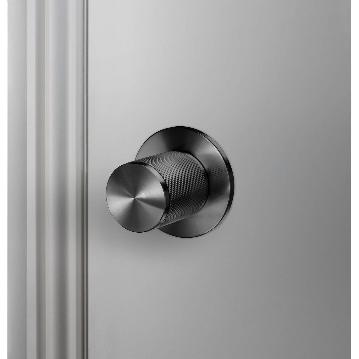 A door knob set made from solid metal and featuring our elegant linear knurled detailing. Works great on all internal doors and can be combined with our matching door accessories.