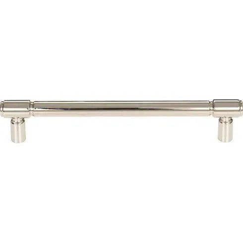 Clarence Pull by Top Knobs refines cabinetry with a clean, architectural silhouette — a balanced tubular bar set on streamlined posts that reads modern and composed. Designed for discerning interiors, this pull pairs precision machining with a subtly matte finish visible in the images, delivering a restrained focal point for kitchens, baths, and fitted joinery.