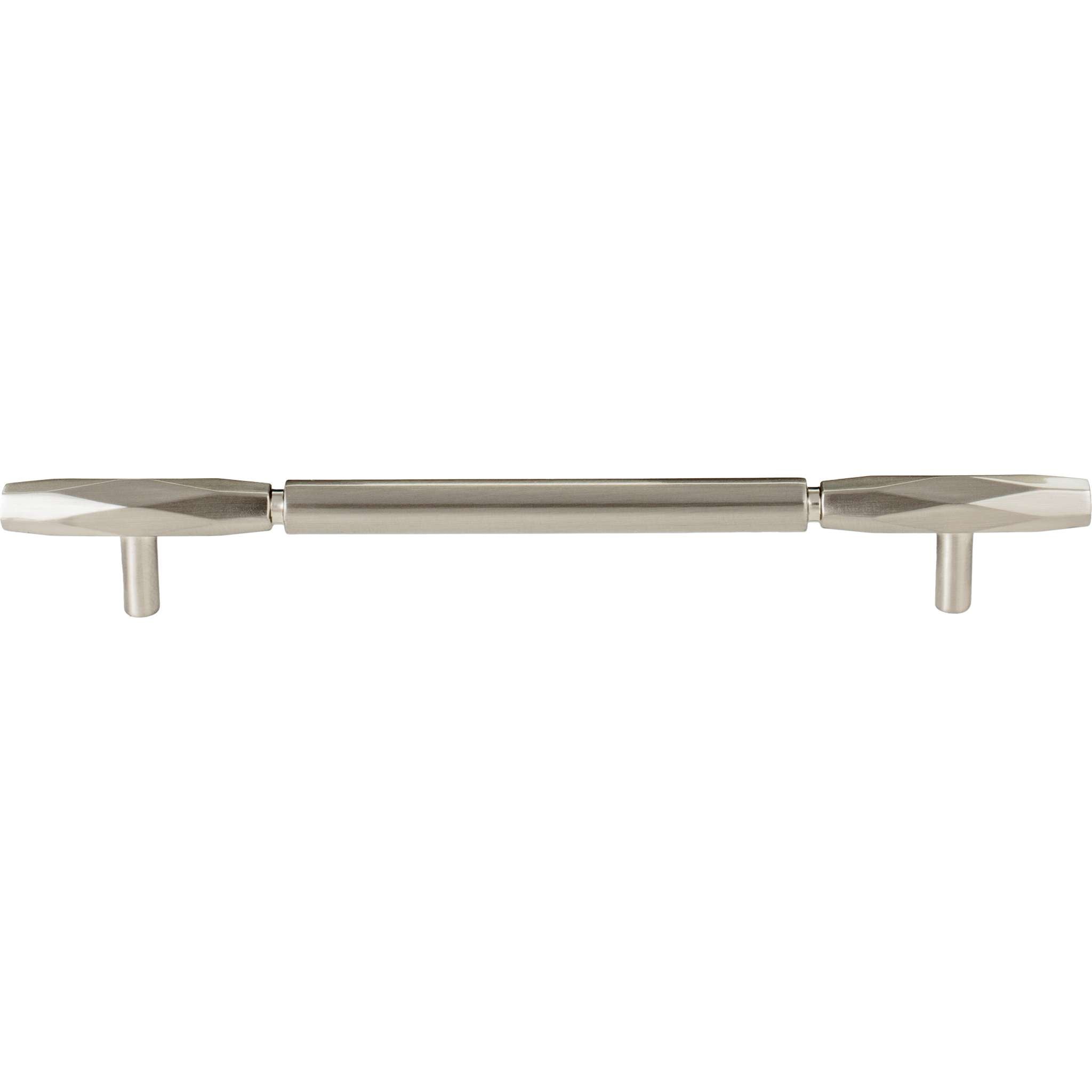 Top Knobs Kingsmill Pull elevates cabinetry with a sculpted, contemporary profile—faceted, tapered ends meet a smooth cylindrical center for a refined, architectural silhouette. The matte metal finish and precise milling read as both modern hardware and luxury décor, offering tactile comfort and visual presence.