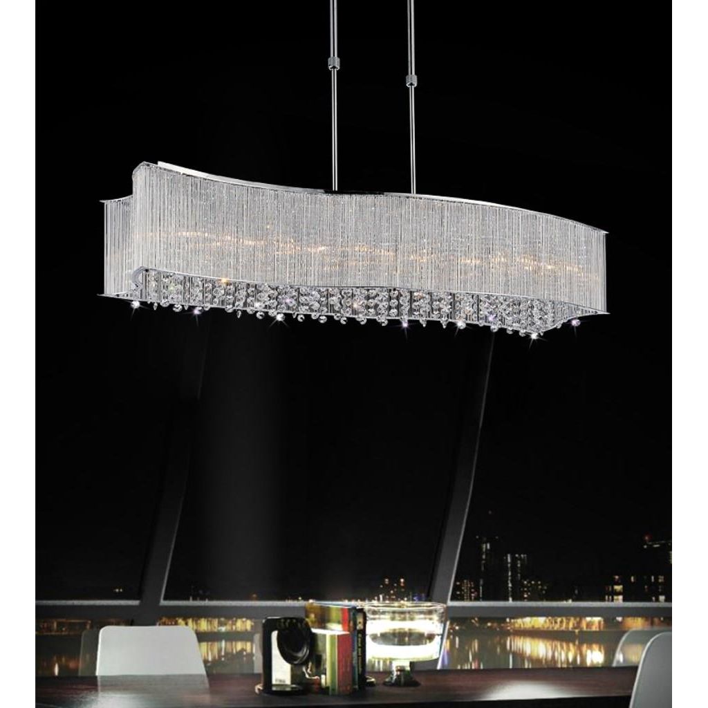 The Elsa Chandelier by CWI Lighting brings radiant sophistication and ambient brilliance to any interior. It showcases a sleek chrome-finished frame wrapped in a clear glass drum shade, while luxurious strands of clear crystal beads hang inside to reflect and refract light beautifully. This chandelier casts a warm, welcoming glow and elevates the glam factor of your living room, dining space, or kitchen. Compatible with G9 LED bulbs, this fixture is also dimmable for added control over your lighting atmosphere. Finish: Chrome Light Count: 10 Light Source: G9 LED Compatible (Bulbs Not Included) Adjustable Hanging Height: Yes Material: Metal, Glass, Crystal Style: Glam / Modern