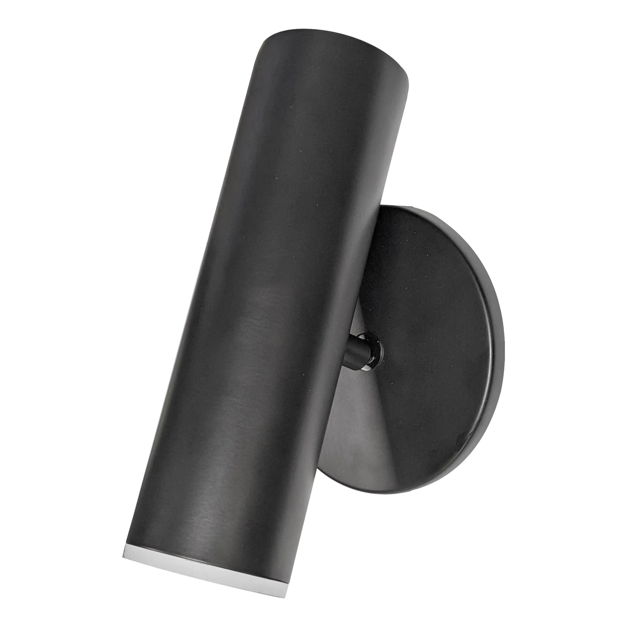 Constance LED Wall Sconce by Dainolite — a refined cylindrical wall sconce that balances sculptural form with practical illumination. The brushed brass finish and slim round backplate create a discreet, modern silhouette that anchors corridors, bathrooms, and layered living spaces with confident style.
