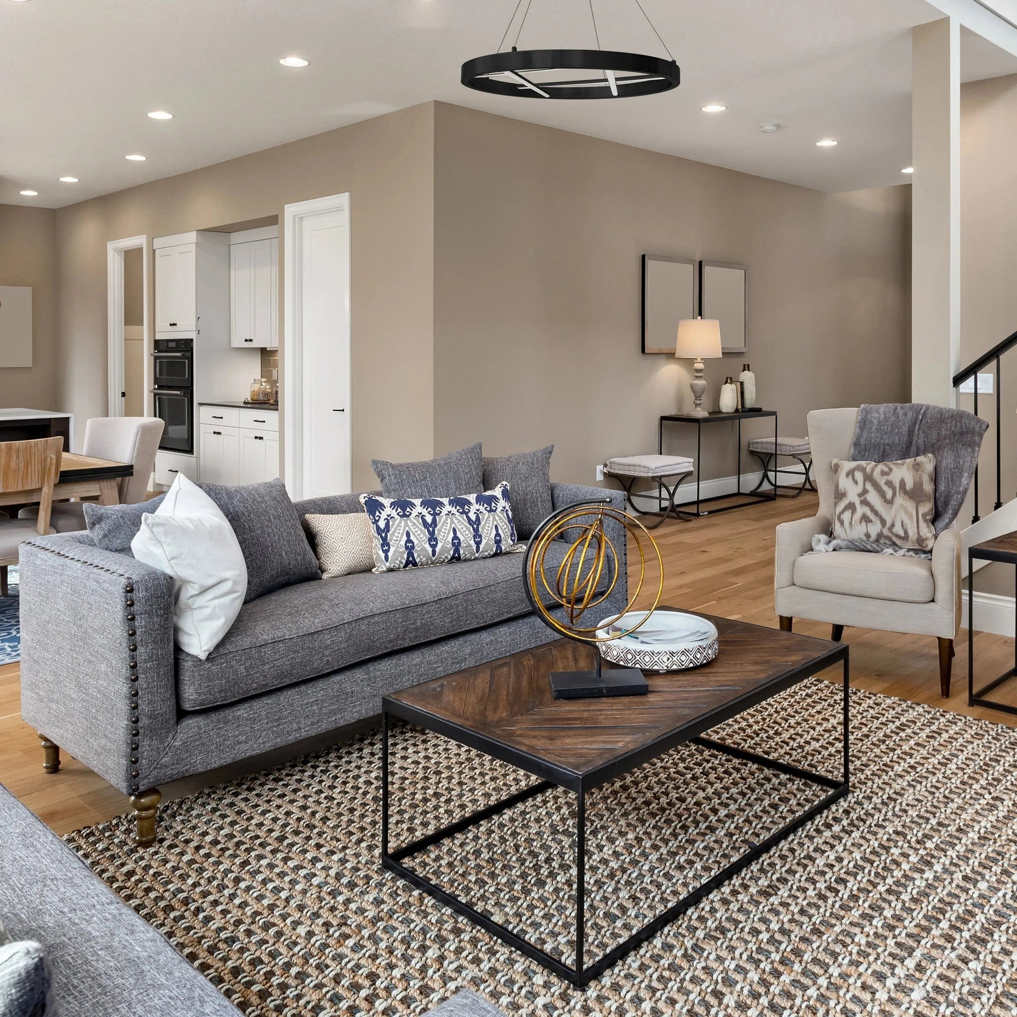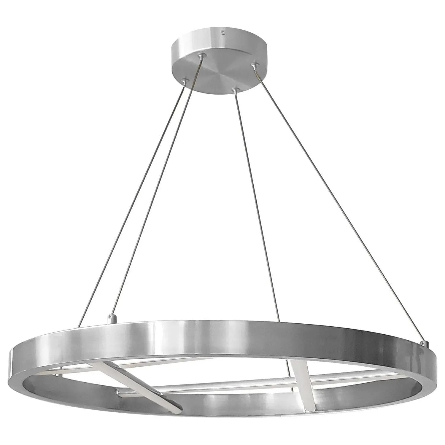 Dainolite Dante LED Pendant refines modern lighting into a confident, architectural statement—an ultra-slim 24" metal ring suspended by slender cables with integrated linear LED crossbars that deliver even, task-ready illumination. Designed for curated interiors where form and finish matter, the pendant reads as both fixture and sculptural focal point.