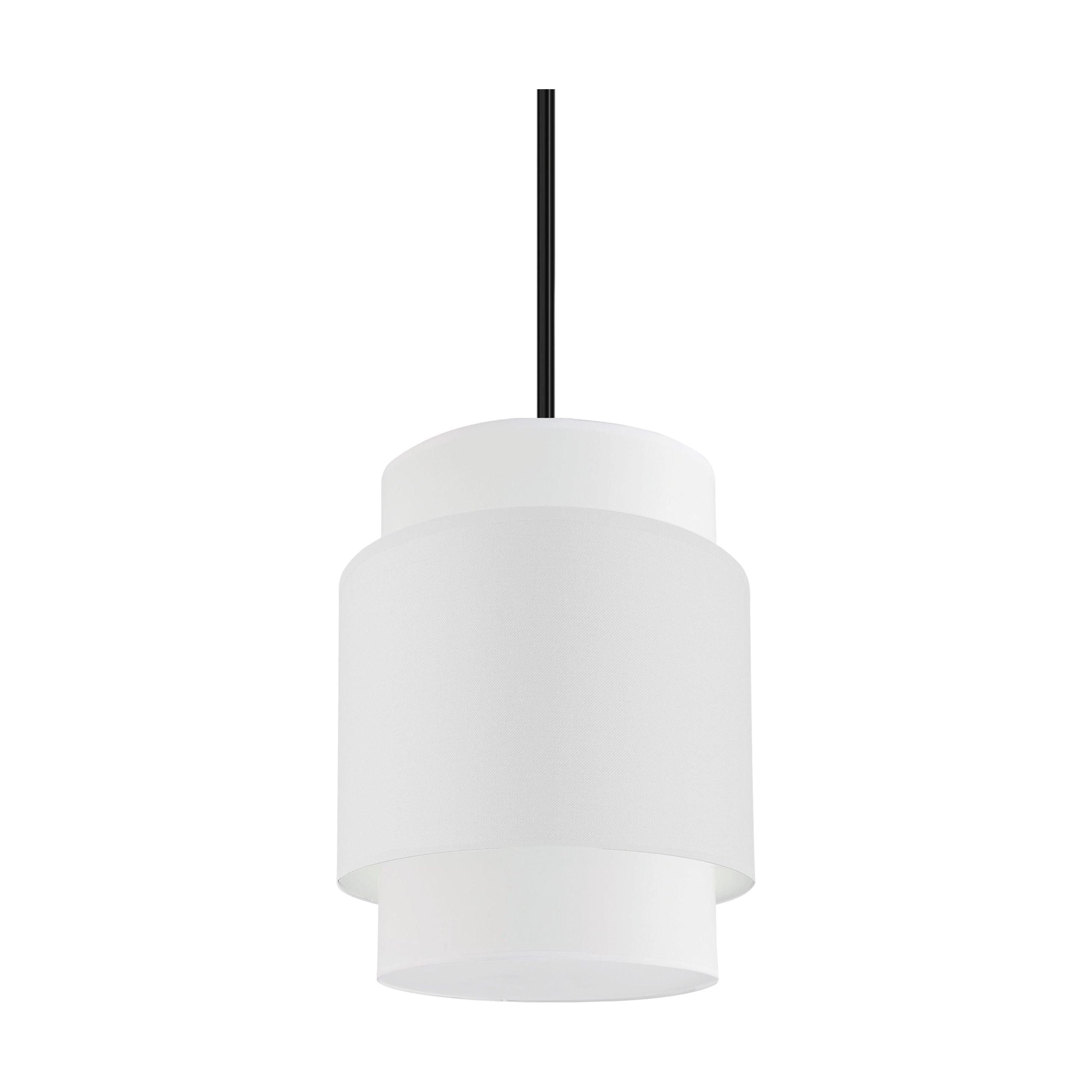 Priya Pendant from Dainolite is a study in restrained modernism — layered cylindrical shades form a clean, sculptural silhouette that softens light while anchoring refined interiors. The matte white fabric and diffuser create even, glare-free illumination; a slender warm-brass suspension rod adds a subtle metallic accent for contrast.