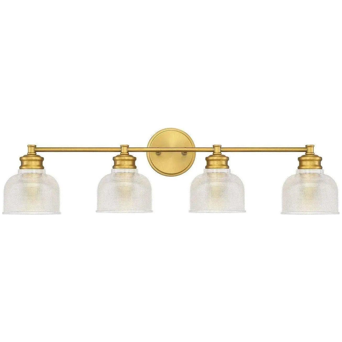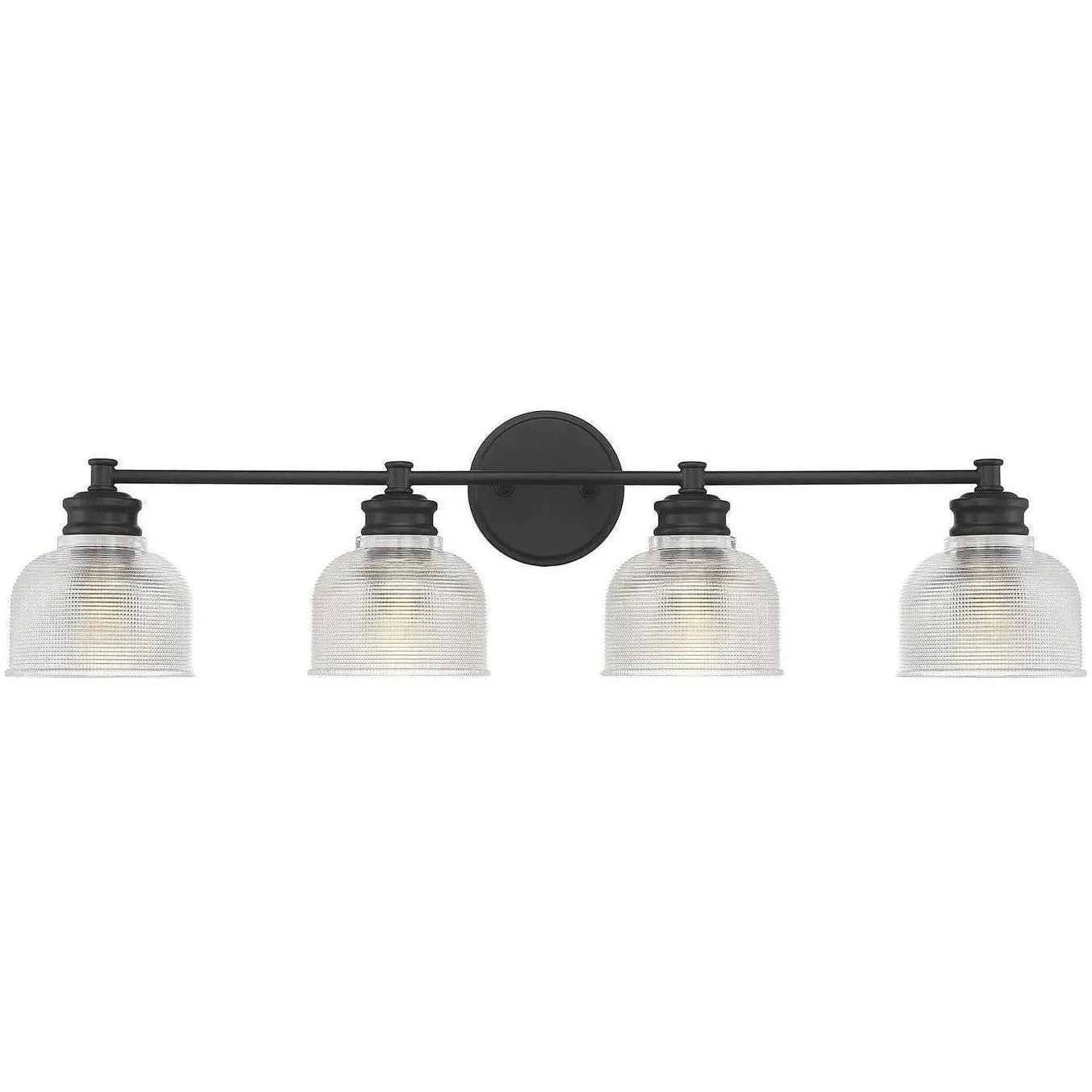 Meridian Lite Trends’ Meridian Four Light Bath Bar balances refined industrial form with precise function—an anchored round backplate, slender horizontal arm, and four textured clear glass shades create directional, glare-controlled illumination for vanity spaces. This is designer lighting that reads modern and considered.