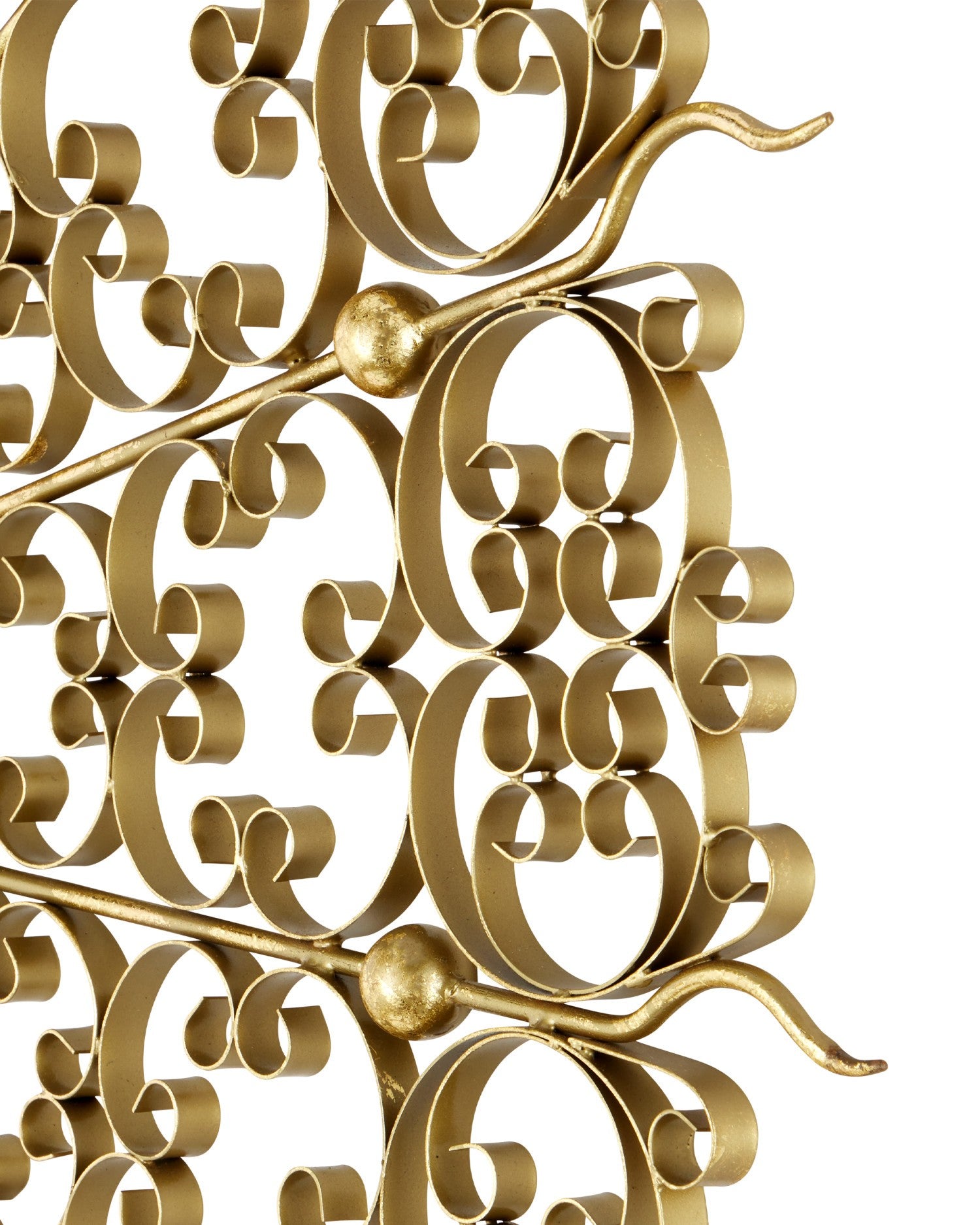 Add a touch of timeless elegance to your space with the Levain Round Mirror. Featuring a stunning convex mirror at its center, this eye-catching piece is framed by intricate ornamental scrollwork that echoes the charm of vintage gates and ornate screens. The swirling metal design with a gold leaf finish radiates outward in a dramatic sunburst shape, creating a sense of movement and sophistication.