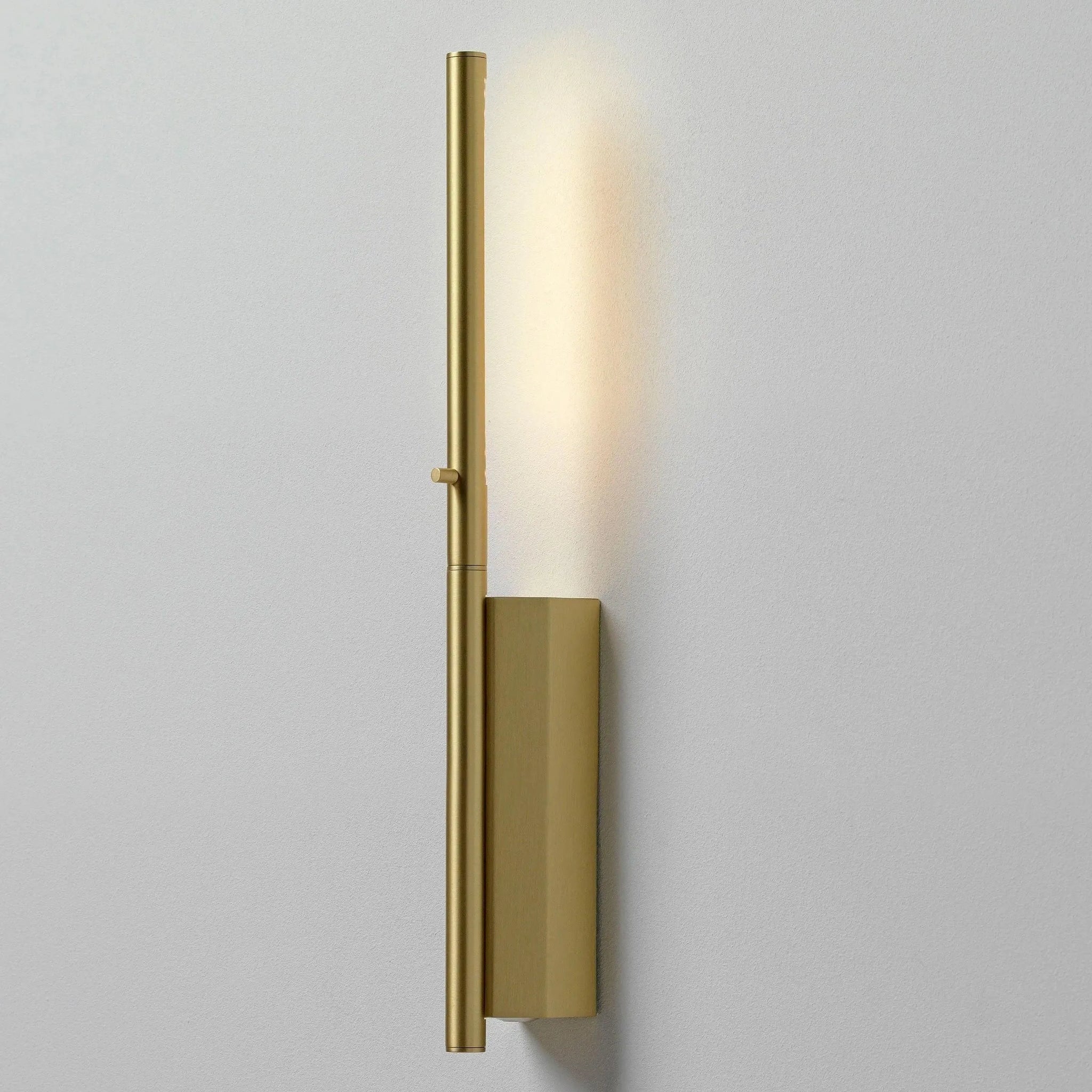 The simple and minimalist Link Wall Light features a slim stem housing an LED strip for a sleek, modern aesthetic. The stem can be positioned towards a wall to provide soft, indirect light or rotated outward to direct light into the surrounding room. Includes octagonal mounting plate to cover 4 inch US junction box (not pictured). Can be mounted vertically or horizontally.