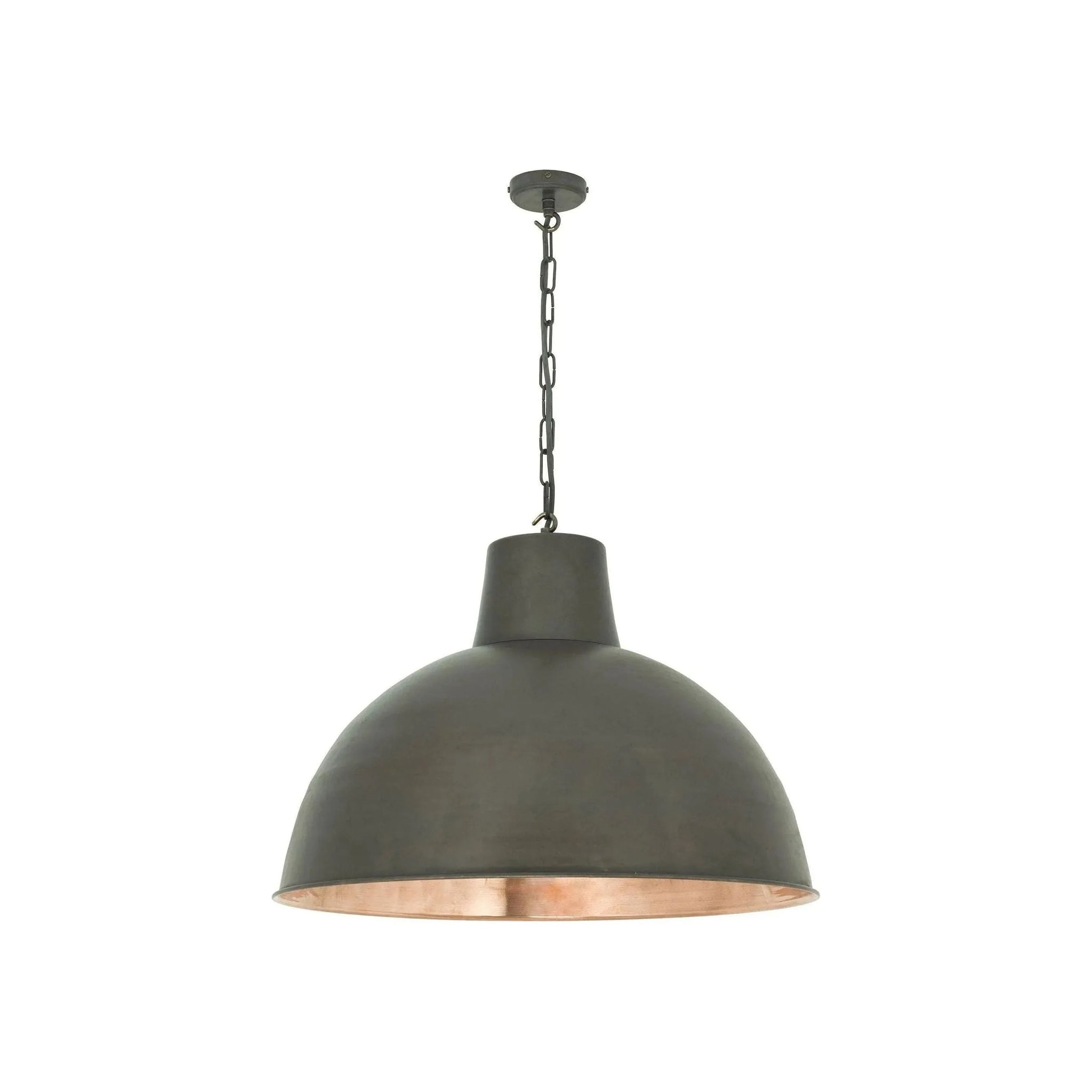 Medium size factory-style reflector pendants are available in two finishes: polished aluminium or weathered copper with a polished copper interior. The production technique leaves a distinctive imprint in the metal, giving each light a beautifully individual, unprocessed look.