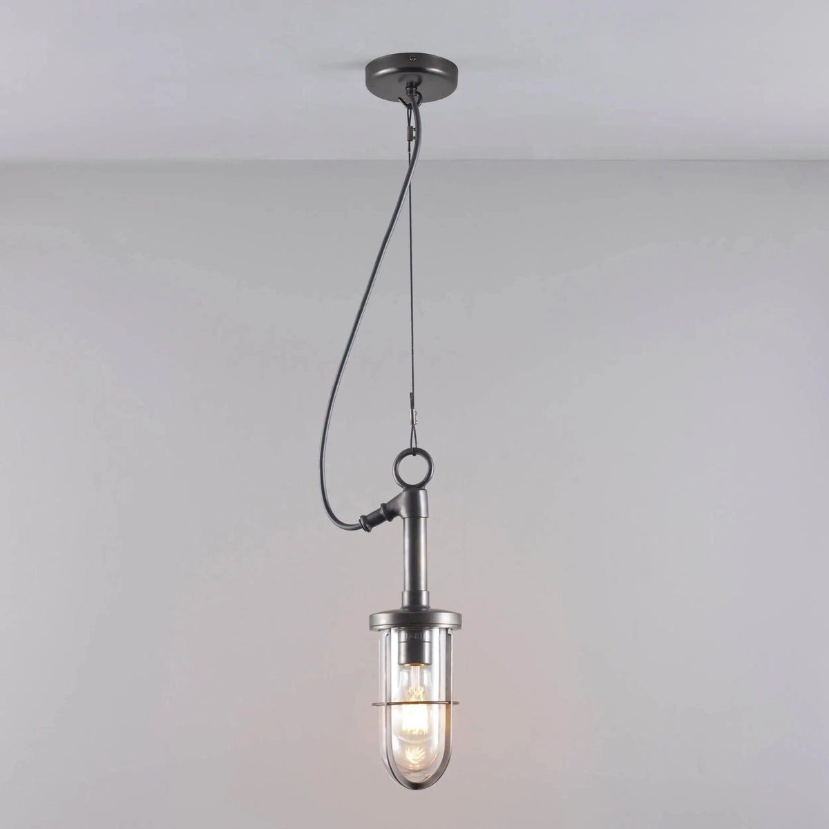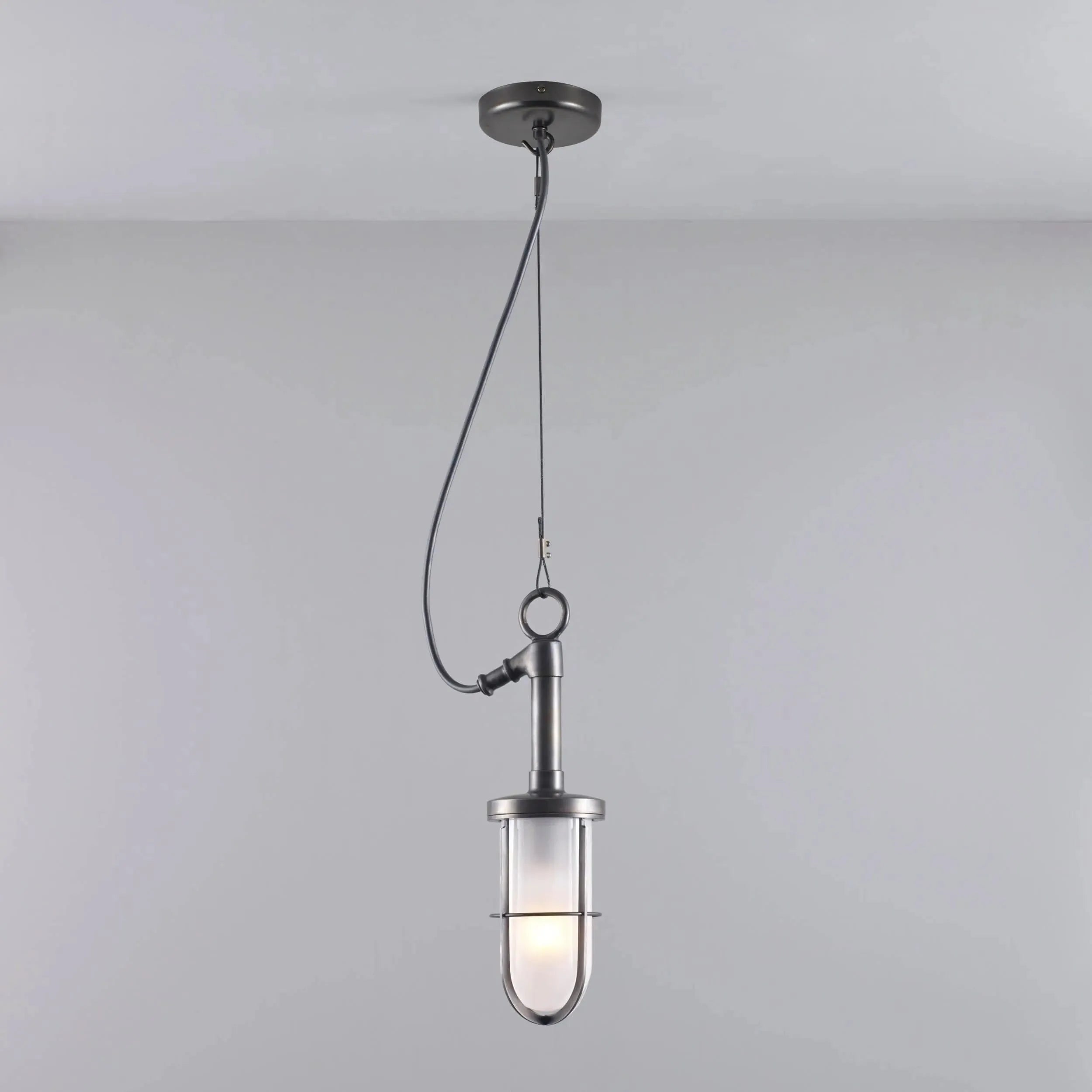 The 7524 Ship's Well Glass Pendant is suitable for both exterior and interior locations. Weathered brass and clear or frosted glass.