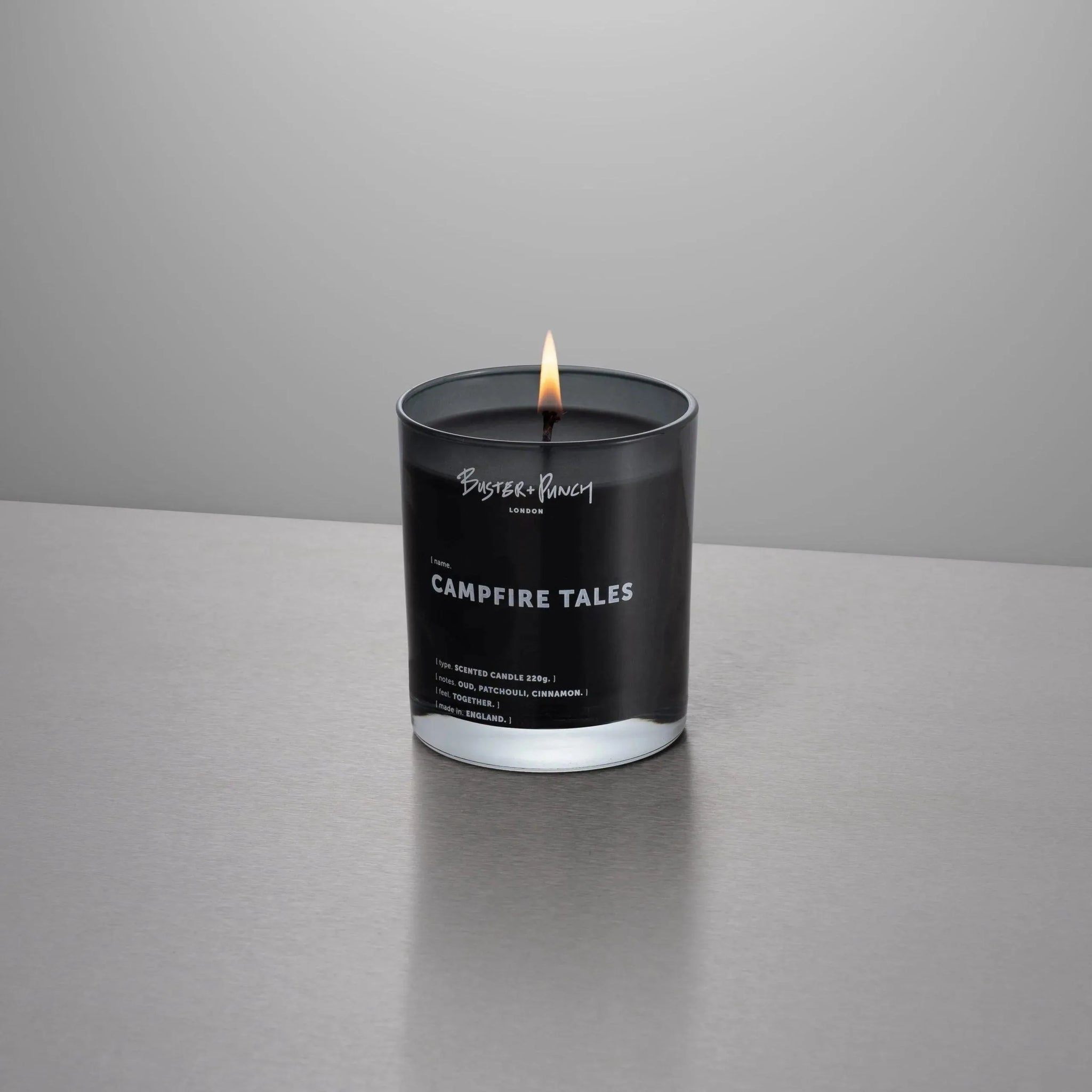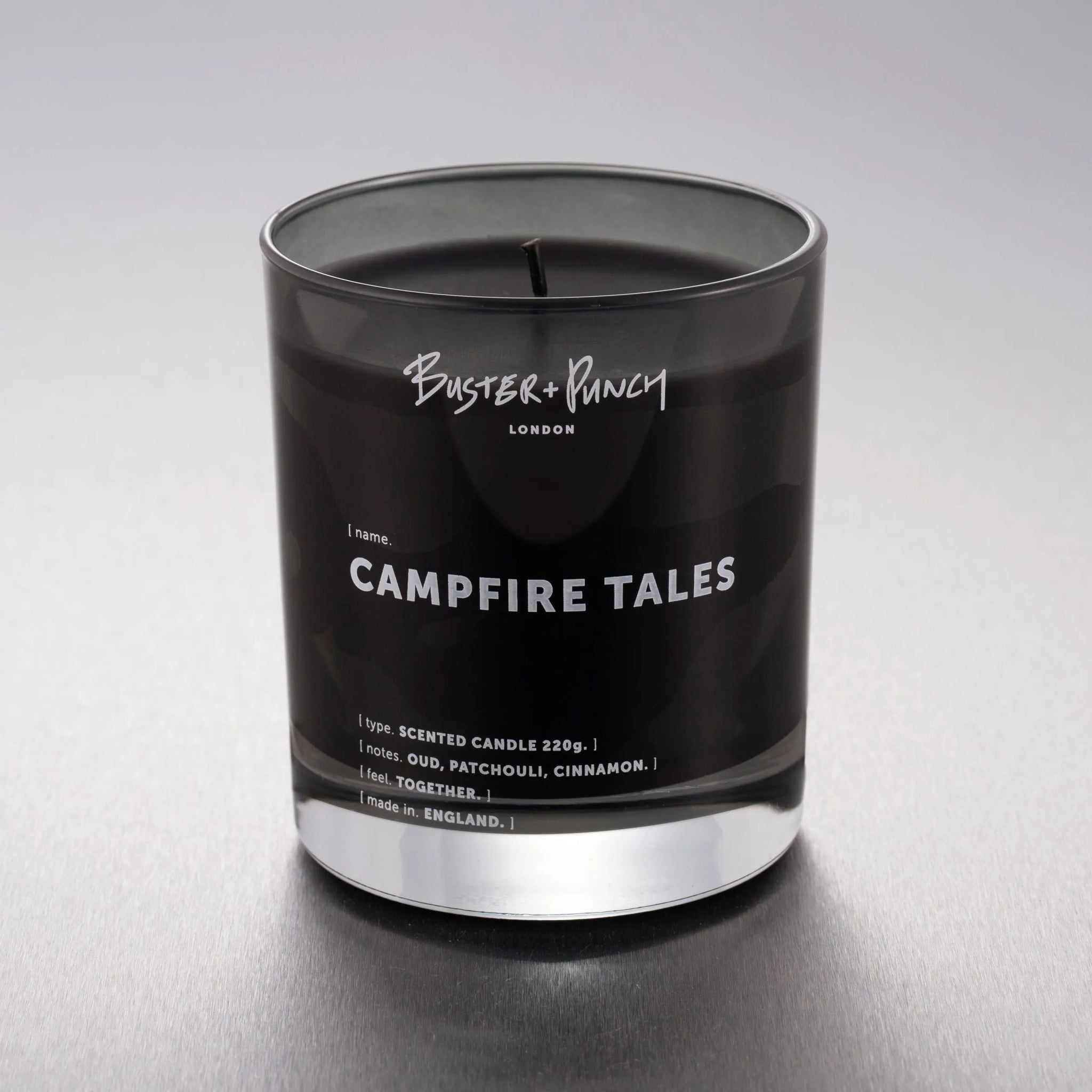 A 220g luxury scented candle, made from black wax using our custom handcrafted fragrance, in a reusable smoked grey glass. Notes of oud, patchouli and cinnamon are gently warming.