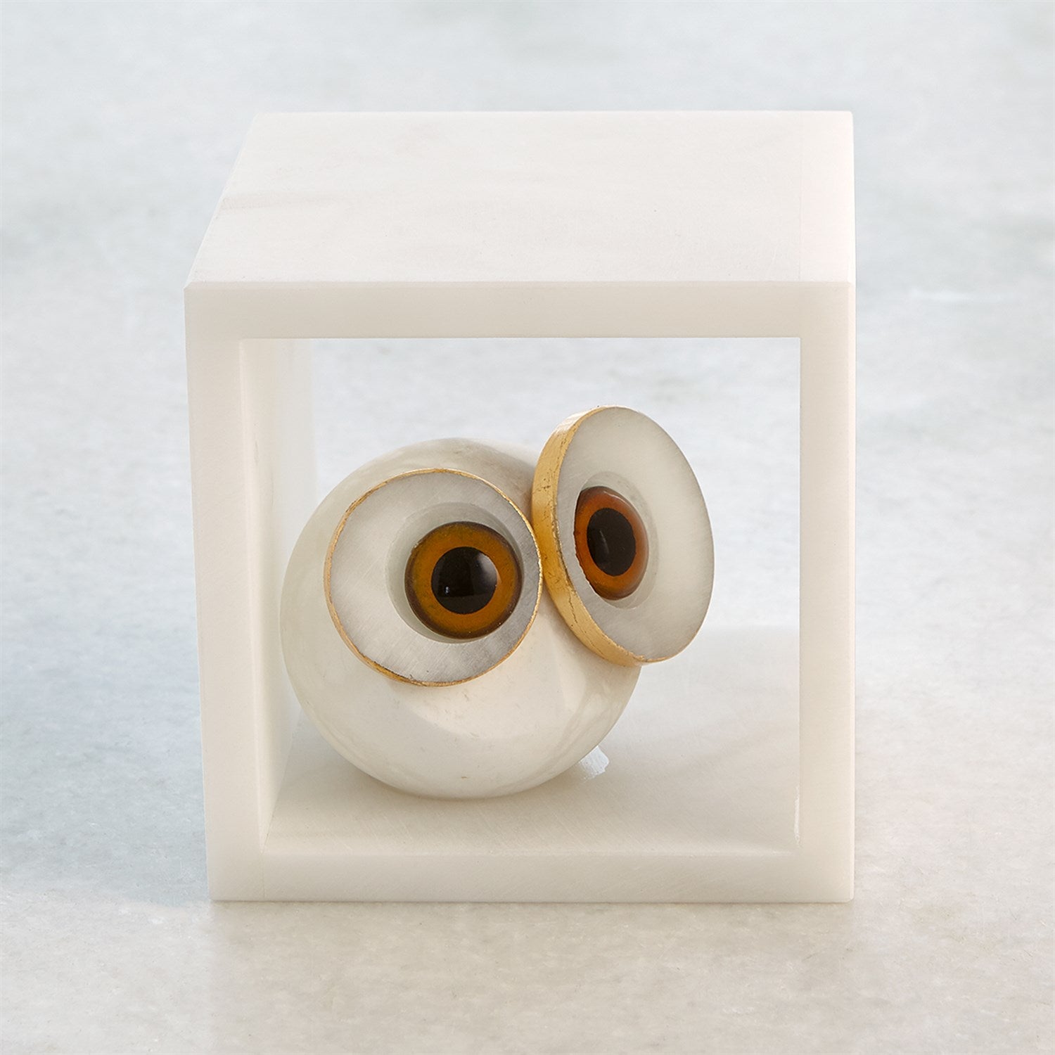 Hoos looking a you! Our Big Eyed Owls are whimsically made of handcrafted Italian alabaster with gold leaf accents and glass eyes. As alabaster is a natural product, please be aware that there will always be variations in veining and color.