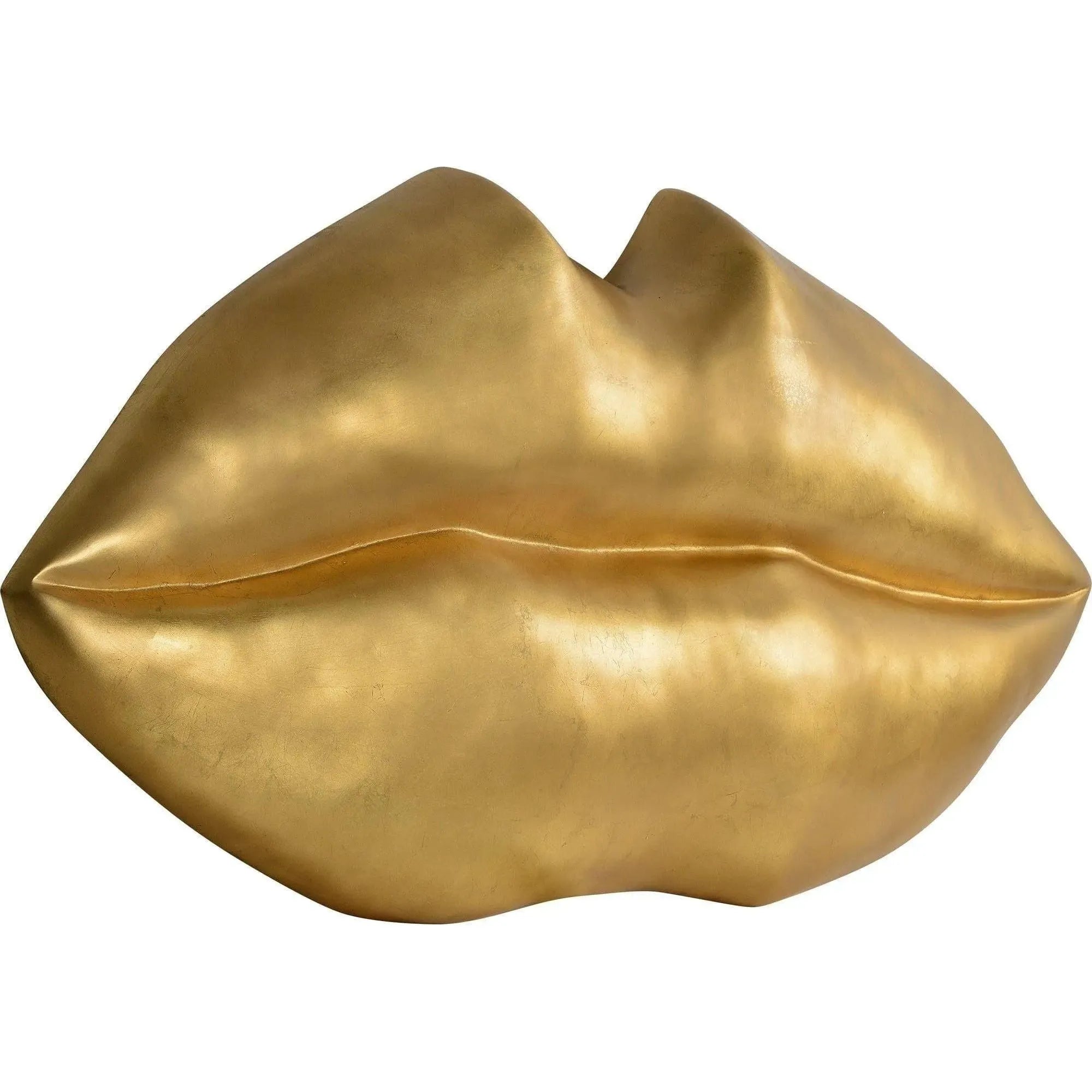 Add a smooch of sparkle with this modern wall decoration. A luscious pair of lips are formed in resin and finished in gold leaf for a kiss of pure glamour. The sculptural shape of the mouth makes for a whimsical wall accessory with an affectionate twist.
