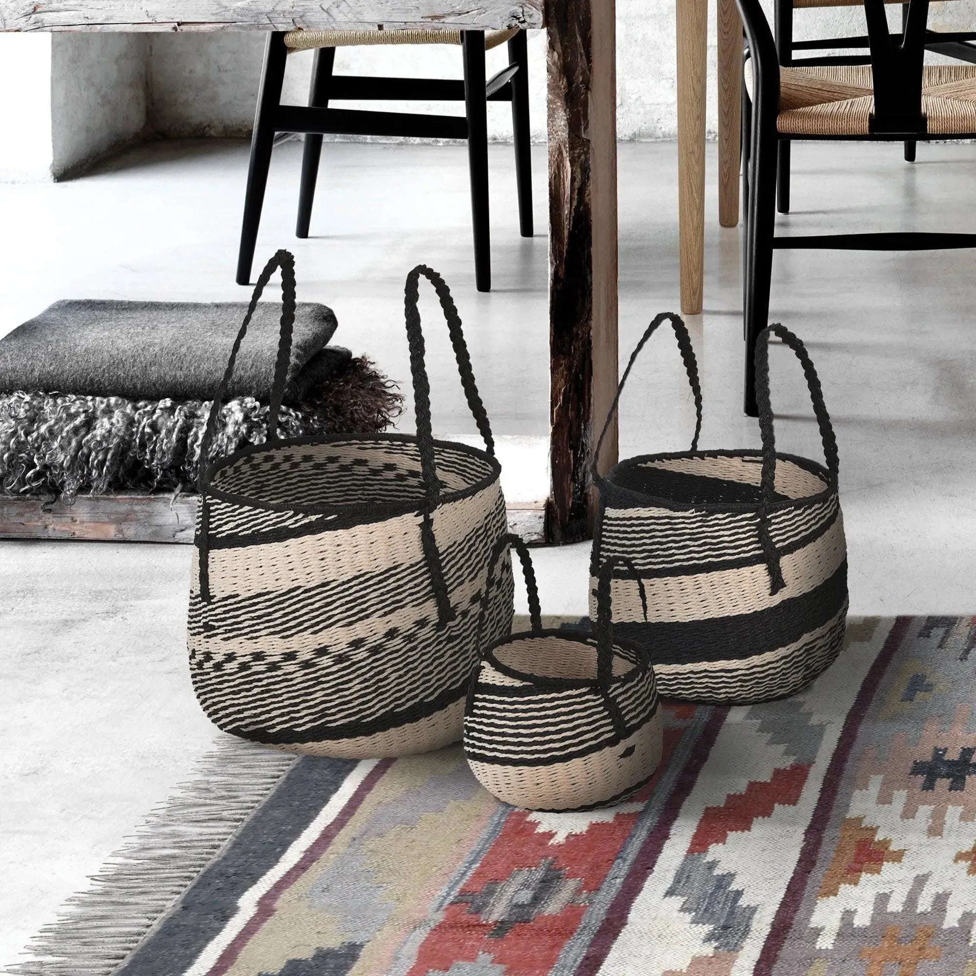 These three baskets prove storage solutions don’t need to be hidden out of sight. The on-trend woven design with black and cream detailing is eye-catching yet cohesive with the contemporary home’s decor. Pair together or place in separate spaces to carry the order and style throughout the home.