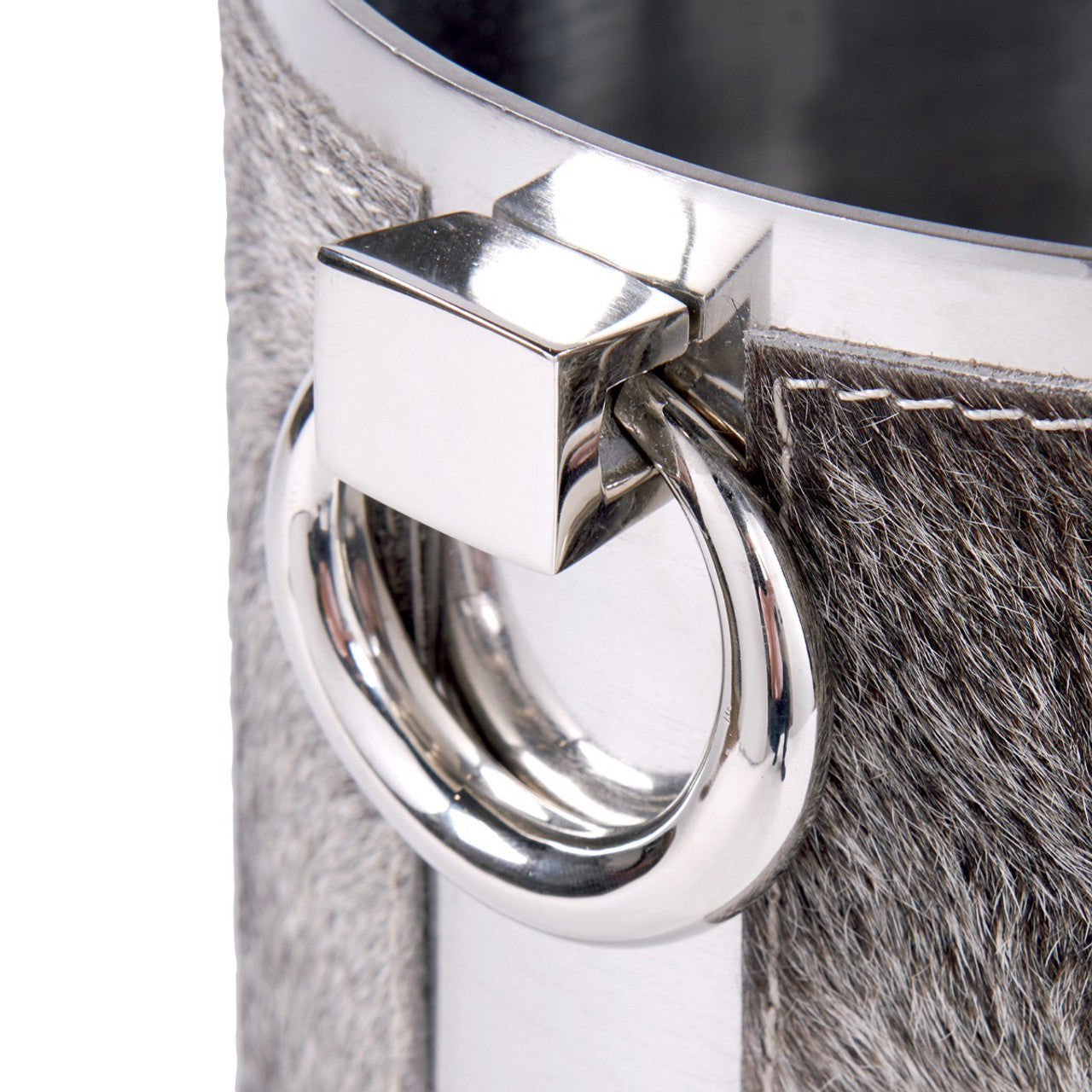 10W x 8.75D x 18HTop-Stitched LeatherAntique Brass Finished MetalHair-on-Hide LeatherPolished Nickel Finished Metal