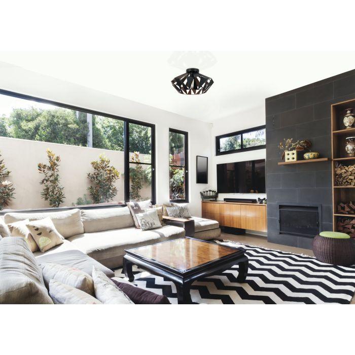Designed to make a precise architectural statement, the Carlton 6 Flush Mount by Eglo Lighting pairs geometric form with a refined matte-black exterior and warm copper inner lining for a dramatic play of light and shadow.